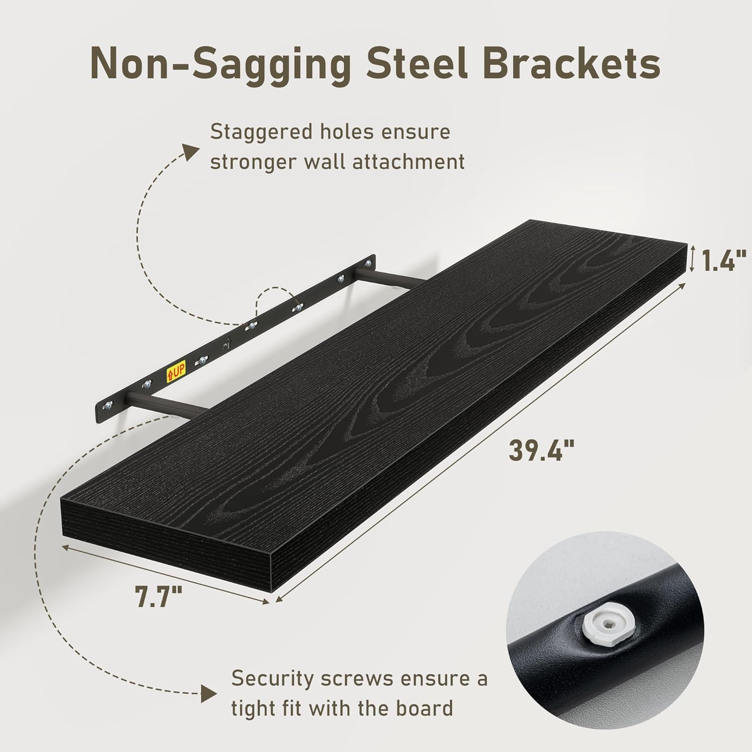 - Easy To Assemble: This floating shelves not only come with stainless-steel galvanized invisible brackets, but also equipped a fixing screw at the bottom to fix the shelf on the support rod, which solves the problem of sliding and is not easy to damage, and can be used for a long time. Instructions, magnetic level, drywall anchors, and screws included. This is great because you can easily mount these rustic shelves Gap-Free to any surface in less than 10 minutes