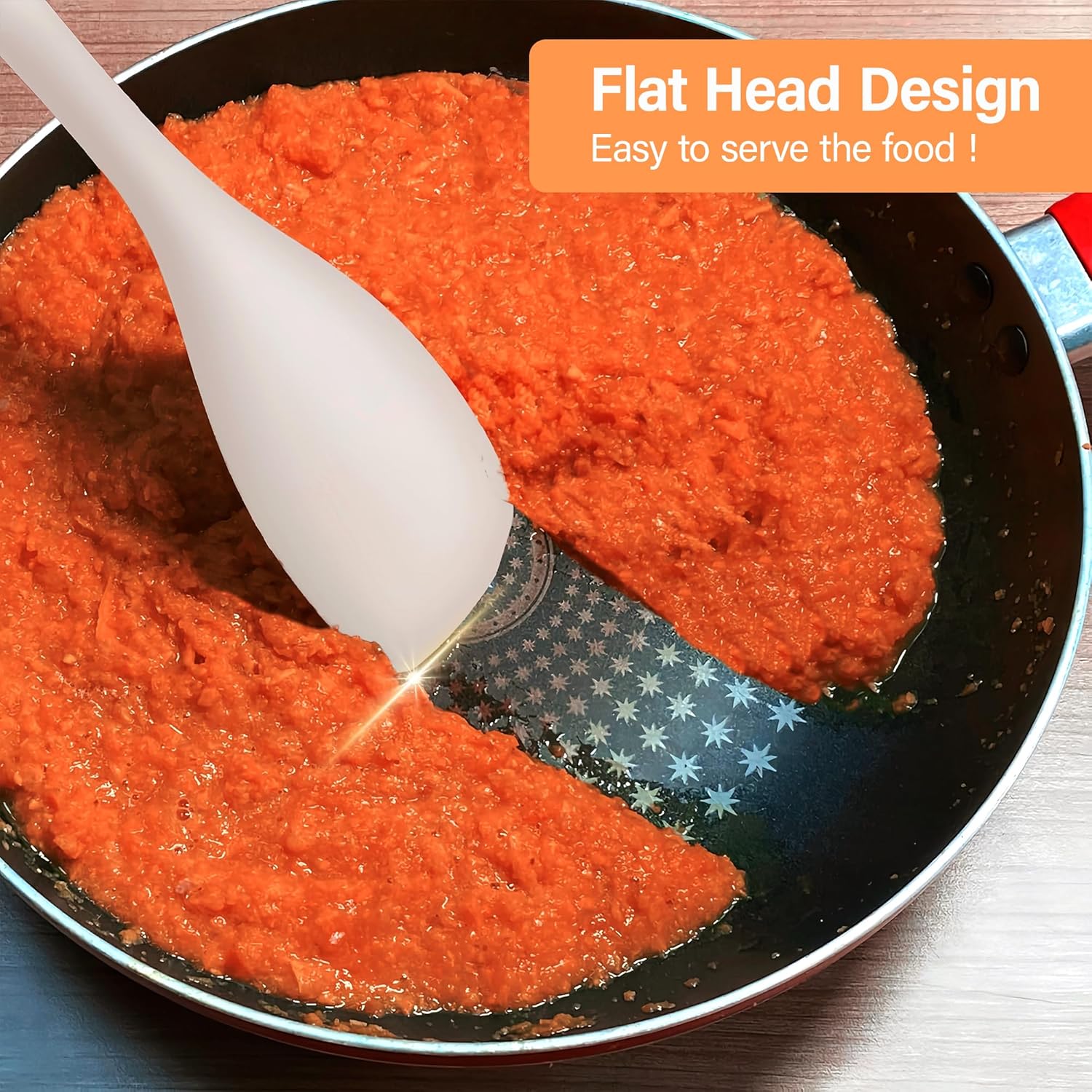 - 🍳【Anti-Scratch & Premium Silicone】This large silicone cooking spoon set are made of top grade 100% BPA-free silicone material. It also comes with a non-stick surface, which won't scratch your non-stick cookware.The heat-resistant silicone withstands temperatures up to 480°F (250°C), ideal for searing meats, simmering sauces, or baking. Its flexible edge adapts to pan contours, while the slotted design drains excess oil or broth for healthier meals.