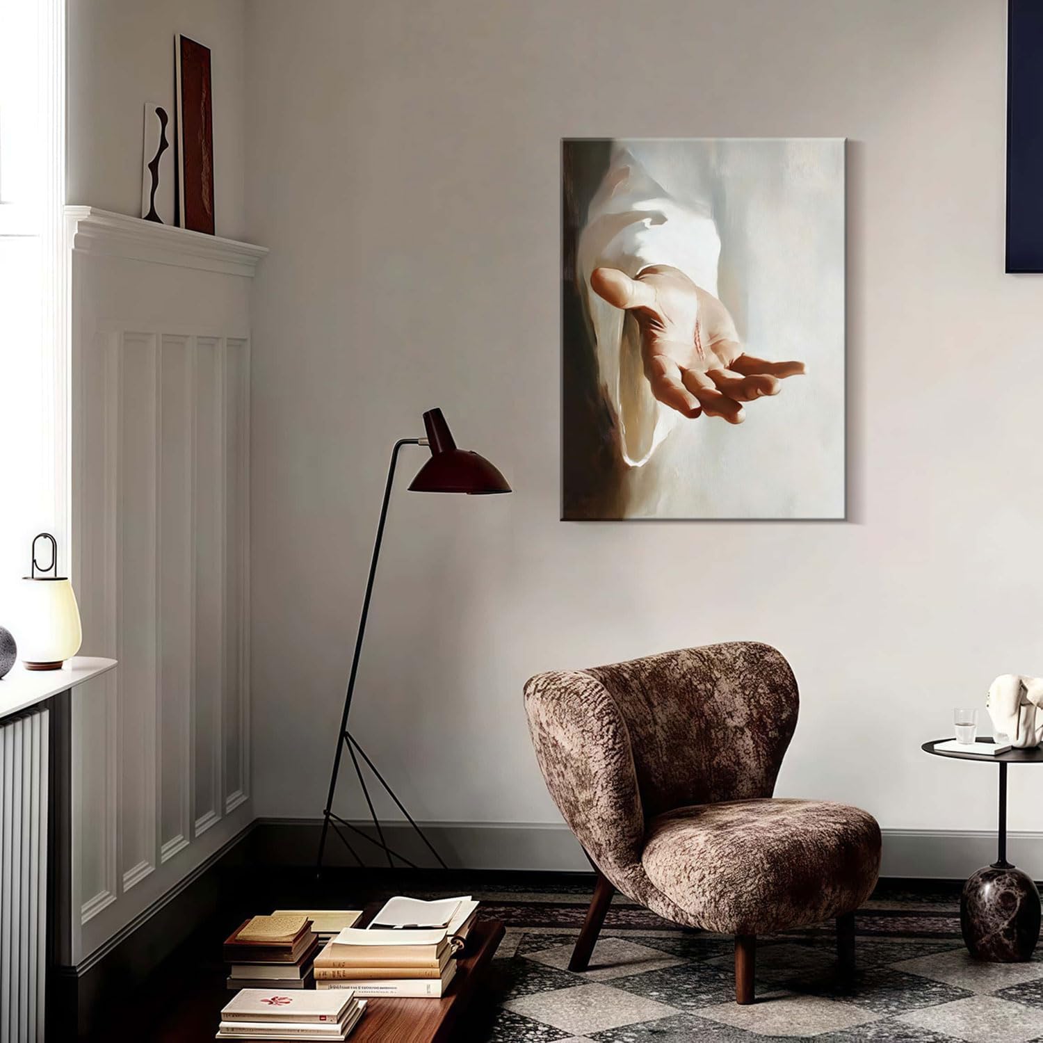 - High-Quality Canvas Print This 12X16 inch canvas print features a powerful and touching image of the hand of Jesus, beautifully printed on high-quality canvas. The intricate details and vibrant colors make it a meaningful and inspiring addition to any space.