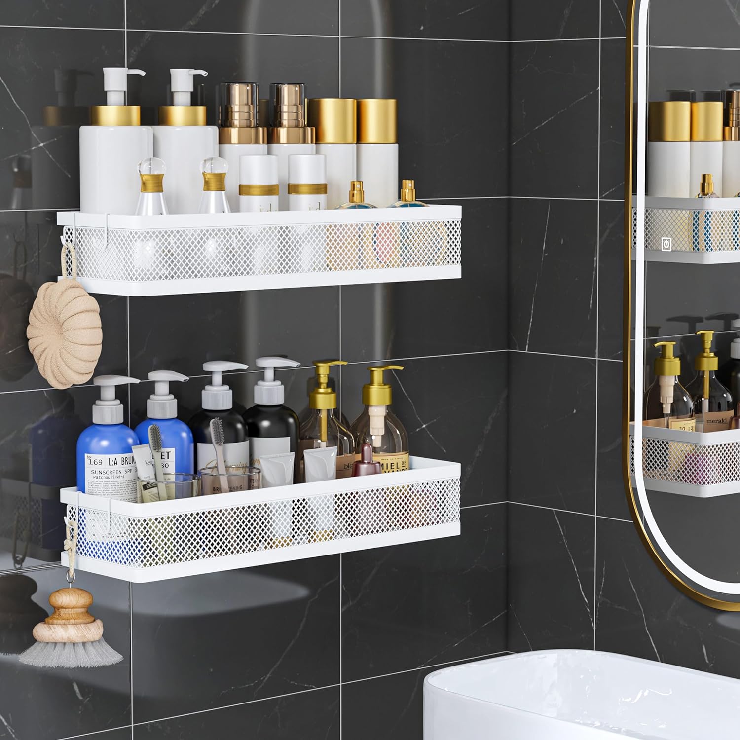 - 【MULTI-PURPOSE&MULTIFUNCTIONAL】5 Hanging Storage Baskets Organizer Set for Sufficient Bathroom Kitchen Storage Space, The bathroom&Kitchen organizer comes with 5 pieces for different uses, including 2 Hanging Storage Baskets, 1 soap holder,1 Tissue holder ,1 utensil holder and 2 adhesives. The perfect solution for organizing a multitude of every items indoor or outdoor. The cabinet organizer hanging baskets wall mount is Ideal for organizing and storing spice bottles, pantry items, snacks, toiletries, tools, craft supplies,etc. And this metal bin basket free up enough space for your homes, kitchen, living room, bathroom, camper, farmhouse, apartments, college dorm rooms, etc.