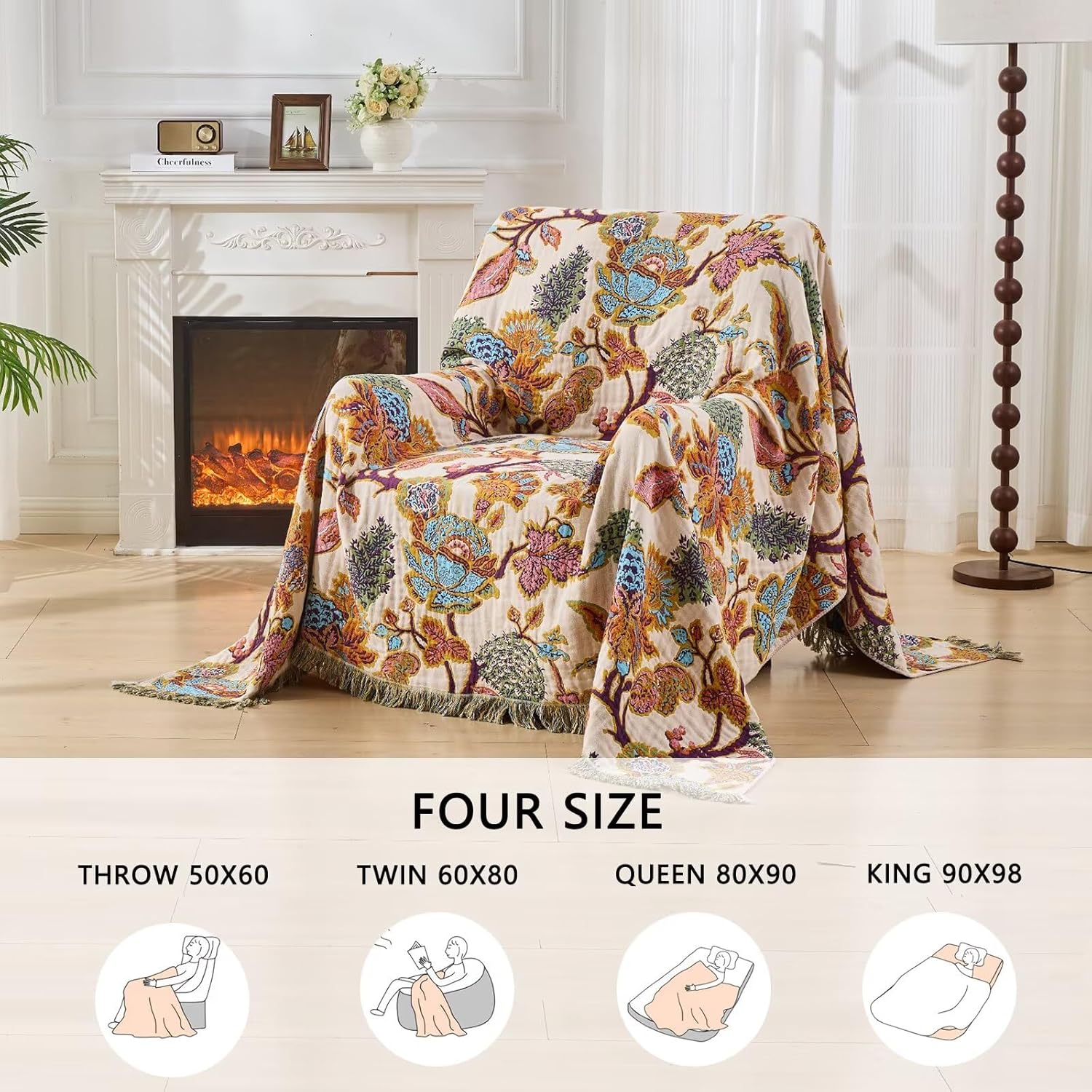- Idyllic Floral and Avian Tapestry: Embroidered with delicate flowers in full bloom and gracefully perched birds, Classic colors and timeless design ensure this blanket is a decor statement piece that will never go out of style.