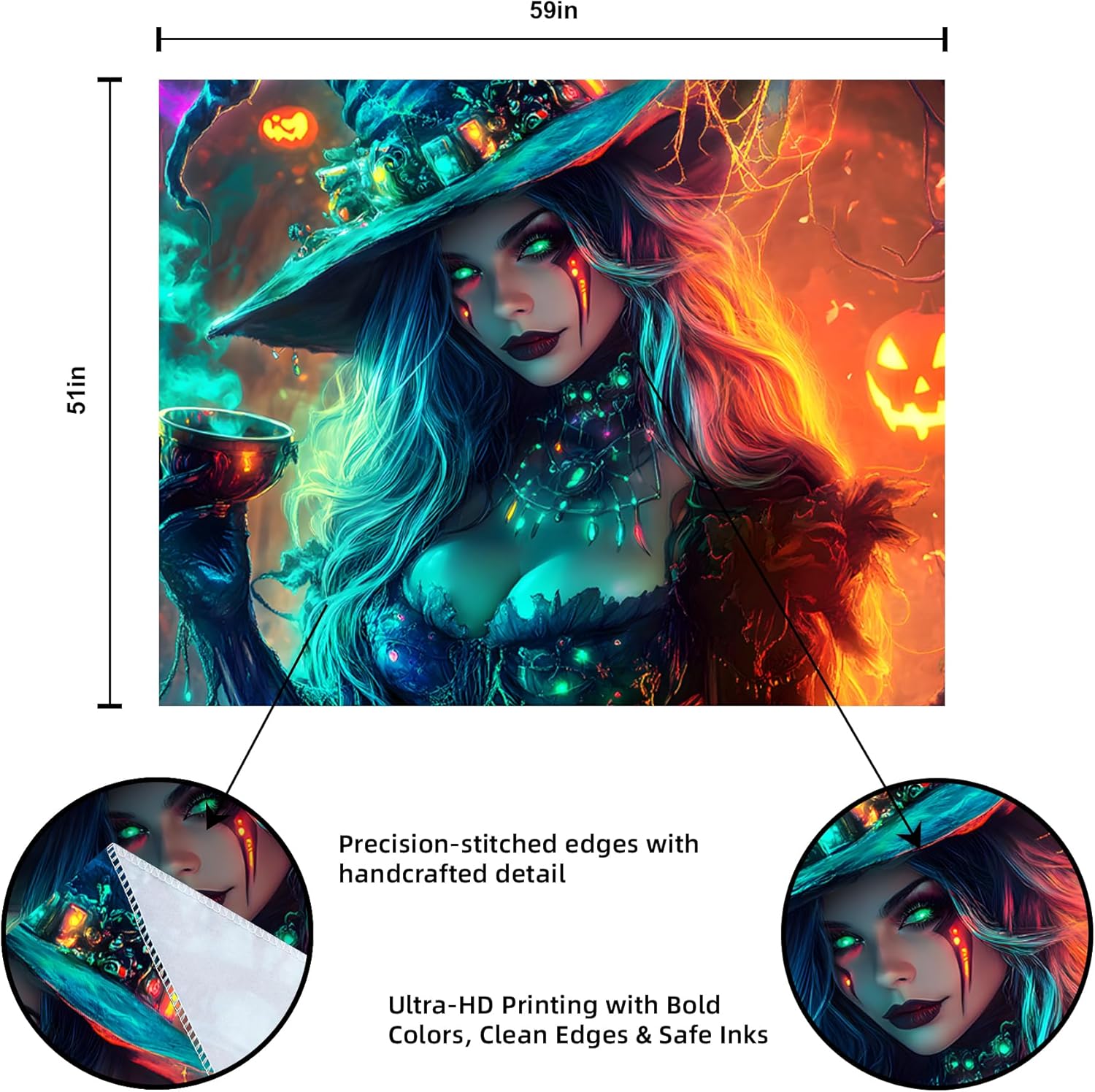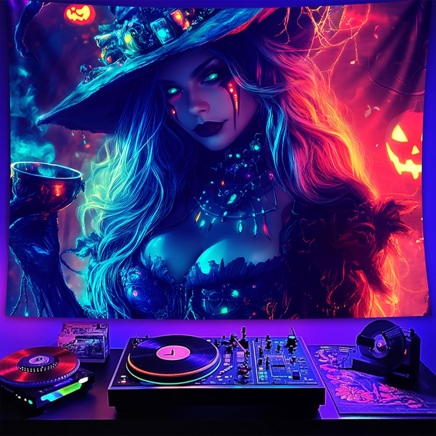 - 【Blacklight Tapestry】Designed for blacklight events, the intricate Halloween art on this blacklight tapestry pops with color in the dark.