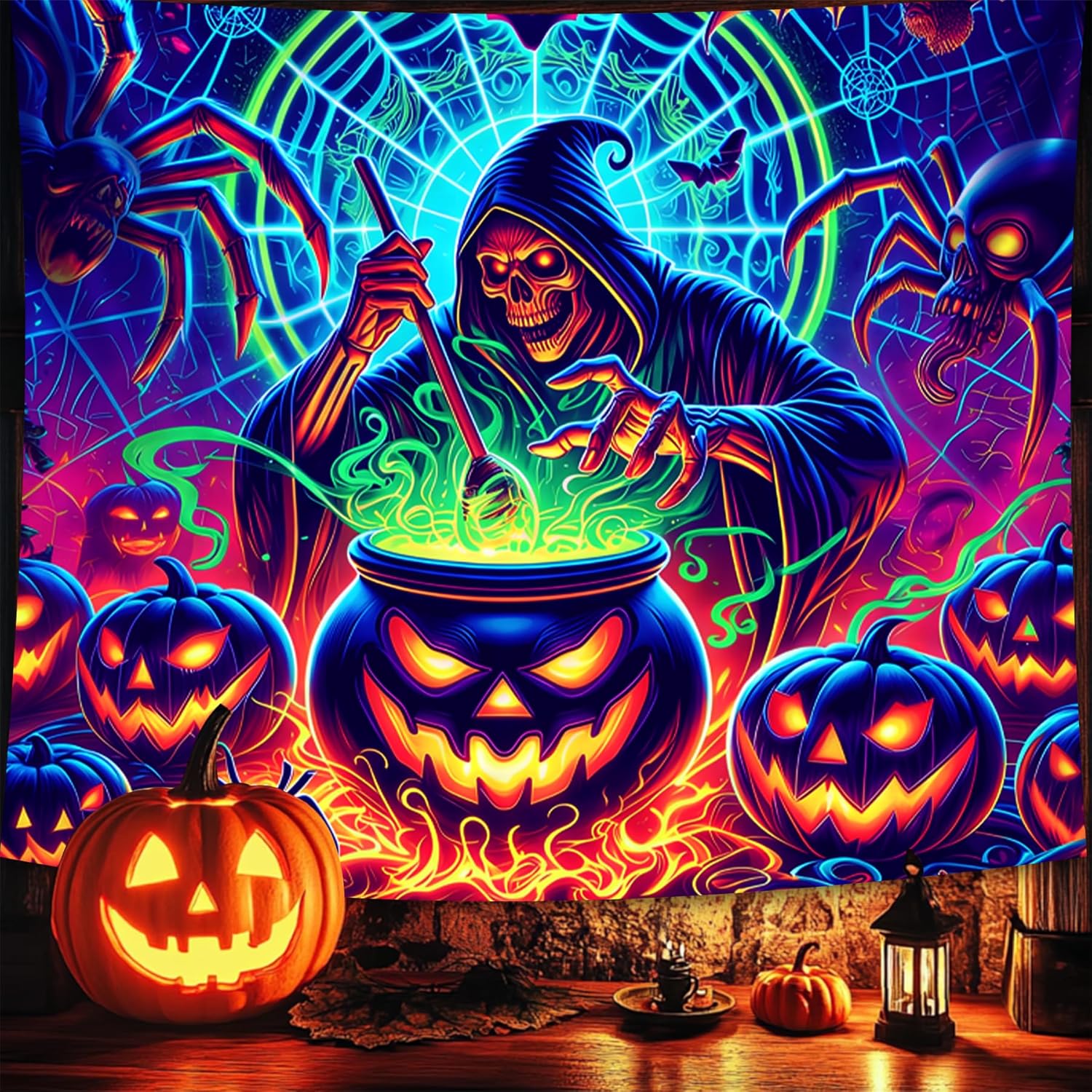 Halloween Tapestry, Blacklight Tapestry for Halloween Party Decor Hanging Tapestries Backdrop Wall Art Poster for Bedroom Dorm 79x59in