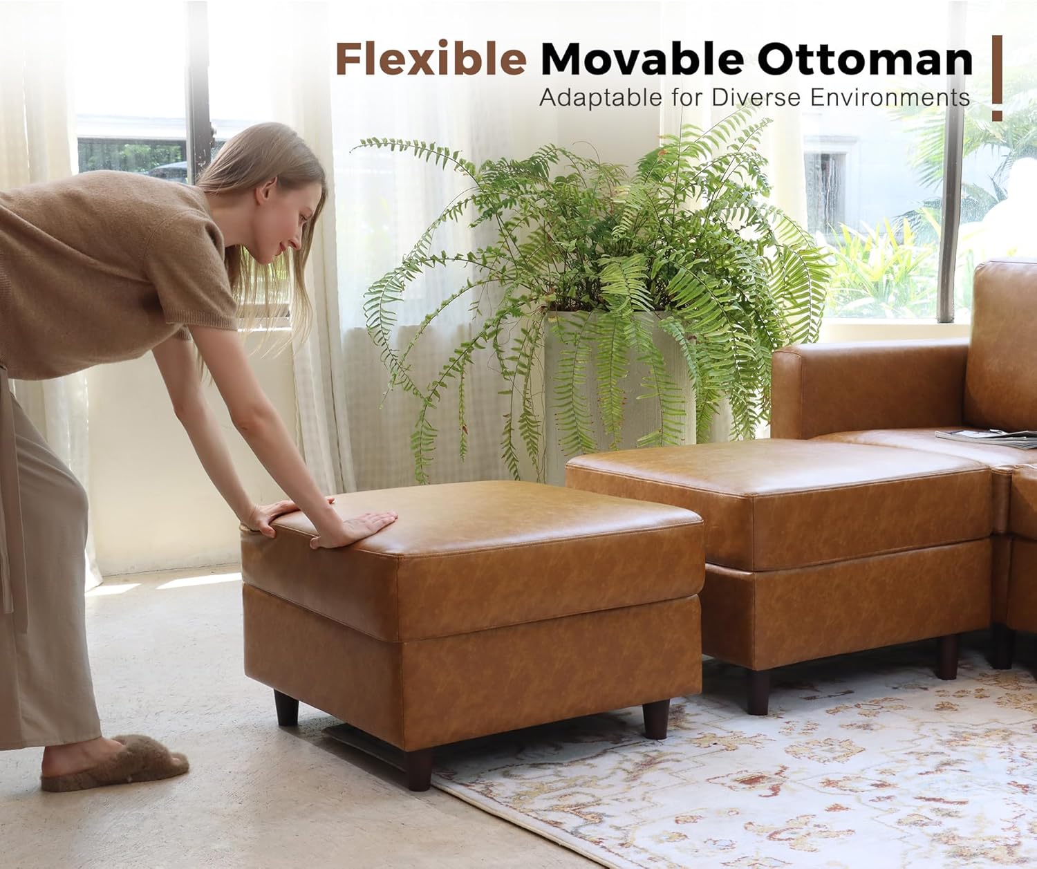ABCASA 118.5" Faux Leather Modular Sectional Sofa, L Shaped Couch Set for Living Room, 6-Seater Comfy Cloud Couches with Movable Storage Ottoman Brown
