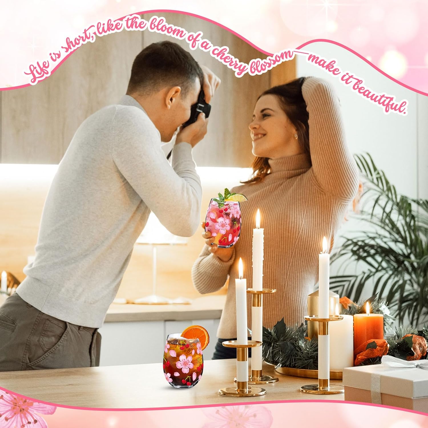 - Package Includes: You will receive 2 cherry and flower stemless wine glasses; This beautiful floral wine glass will enhance your wine tasting or other beverage experience, allowing you to feel the fresh breath of blooming season when drinking, and immerse yourself in a relaxing and pleasant time