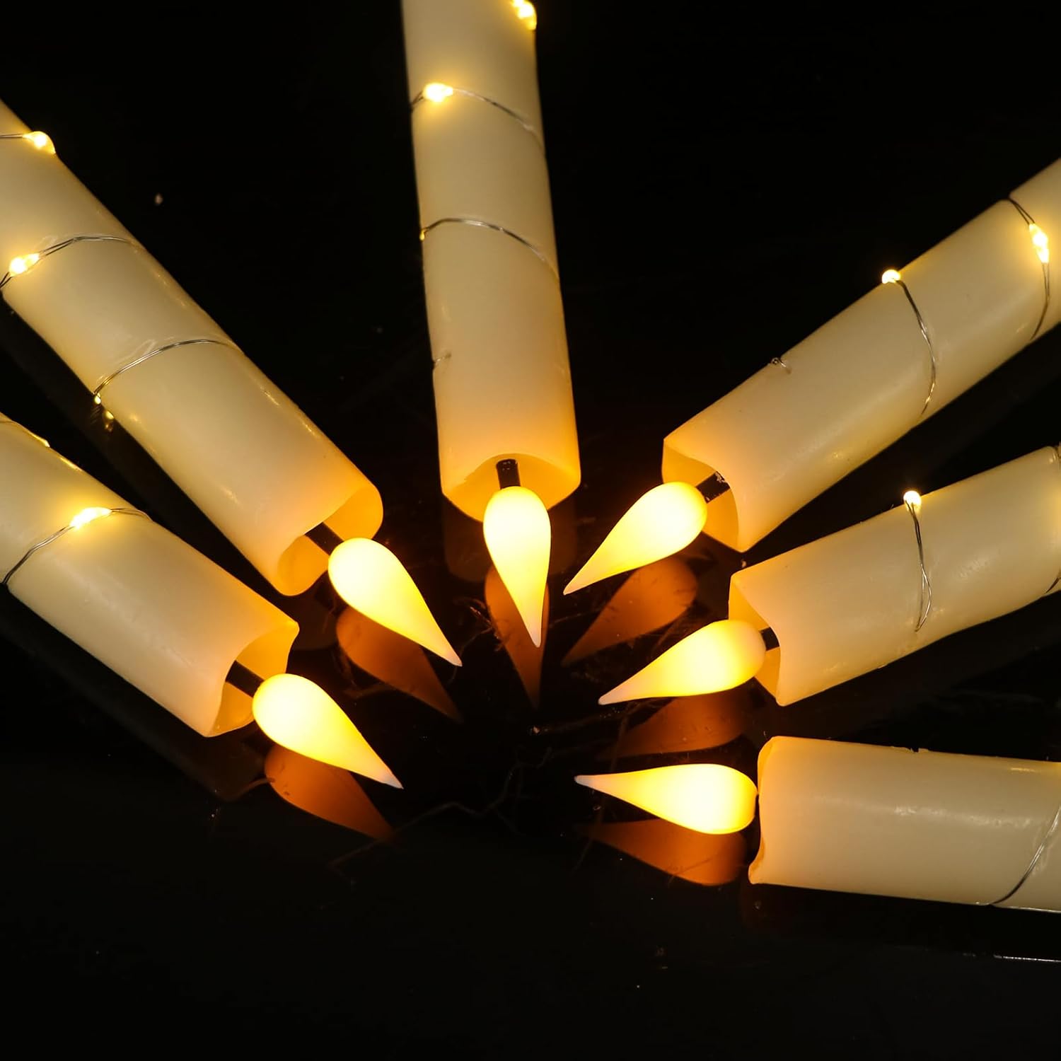 - Package Included: You will receive 6 x ivory flameless taper candles with string lights, 1 x remote timer, and 1 x user manual. Each taper candle is operated by 2AAA battery (not included)