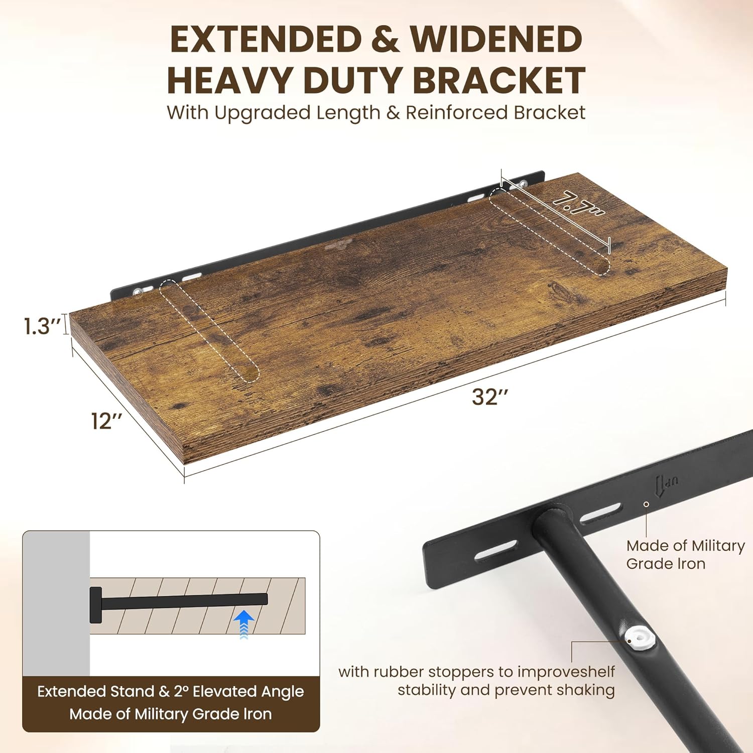 32" Floating Shelves for Wall, 12" Deep Slim Rustic Brown Floating Shelves, Wall-Mounted Shelves for Bedroom, Living Room, Kitchen, Bathroom - Set of 2