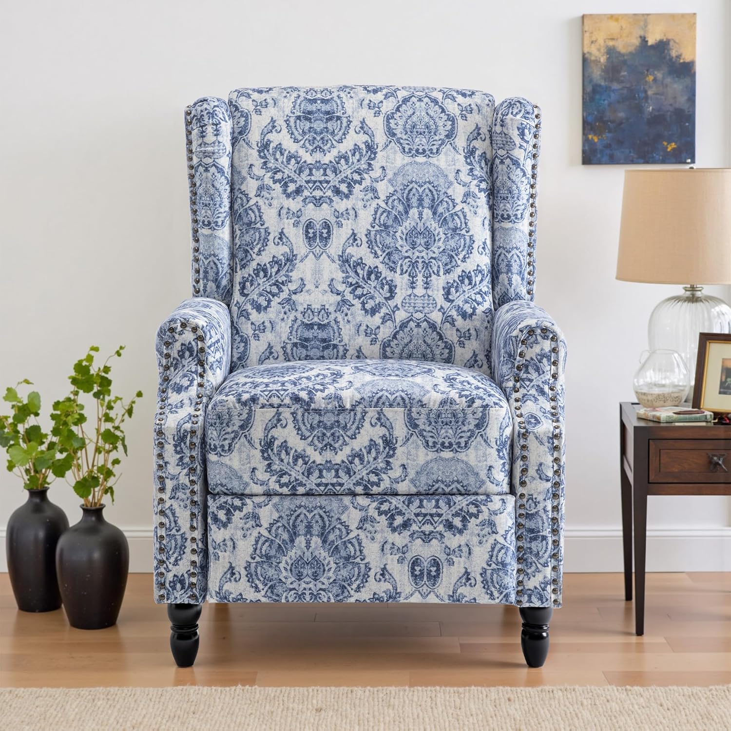 - Attractive Printed Pattern Chair - This armchair features nailhead trim, rolled armrests, vintage wooden legs and a beautiful patterned design for a traditional and chic look. Ideal for waiting room, living room, bedroom, dressing room, dressing room, office, reception room.