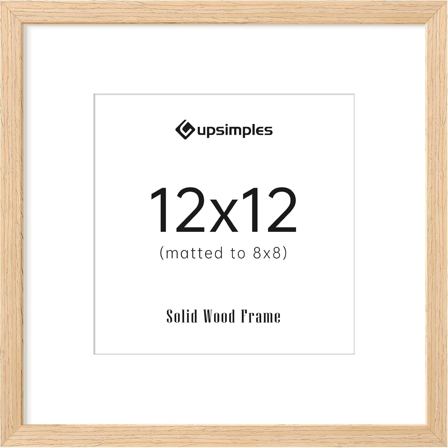 upsimples 12x12 Frame, Natural Solid Wooden Picture Frames, Display 8x8 with Mat or 12 x 12 Without Mat, Wall or Tabletop, 1 Pack, Natural