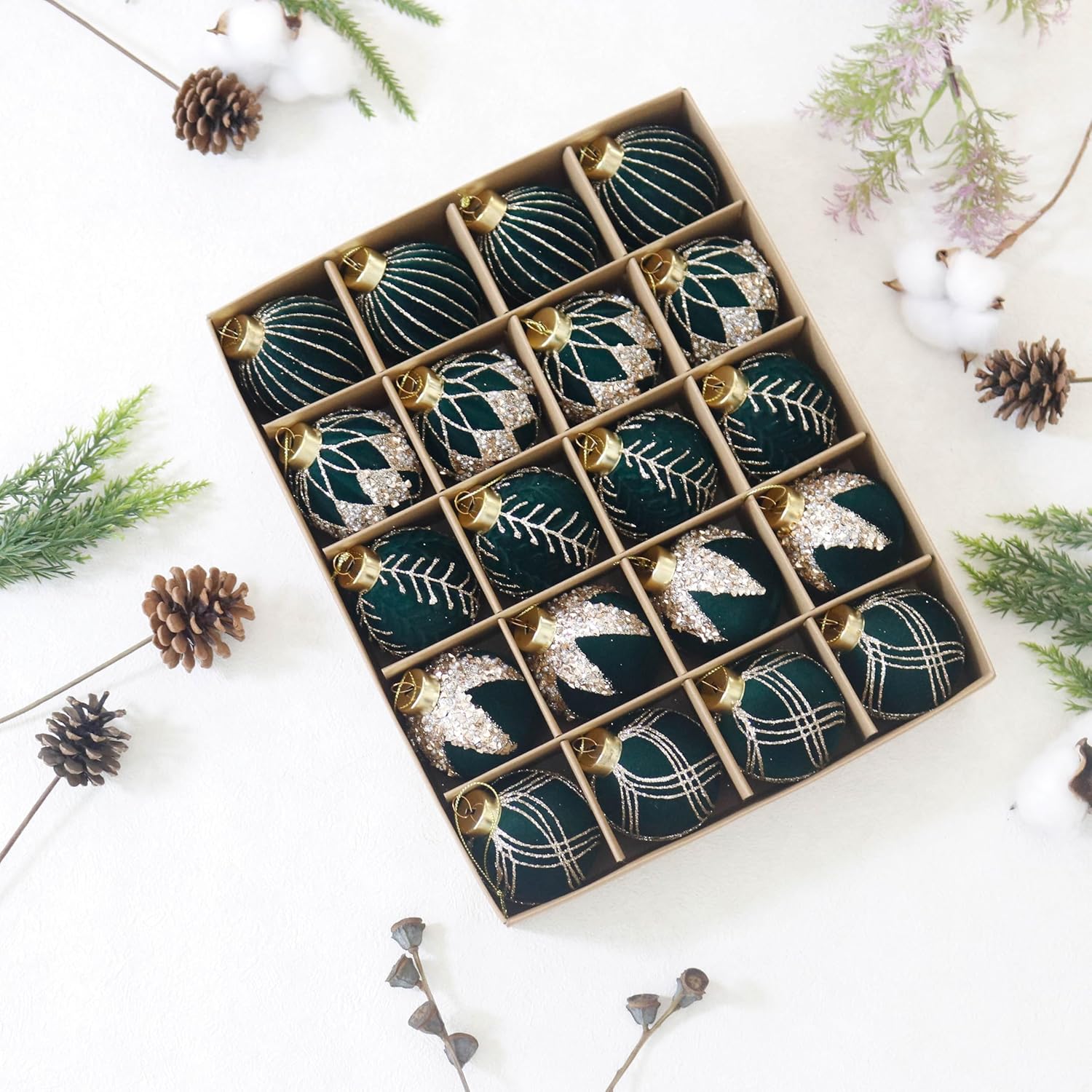 20PCS Velvet Ornaments for Christmas Tree, 2.36INCH Glitter Flocked Christmas Ornaments Decorations Balls Set Decor