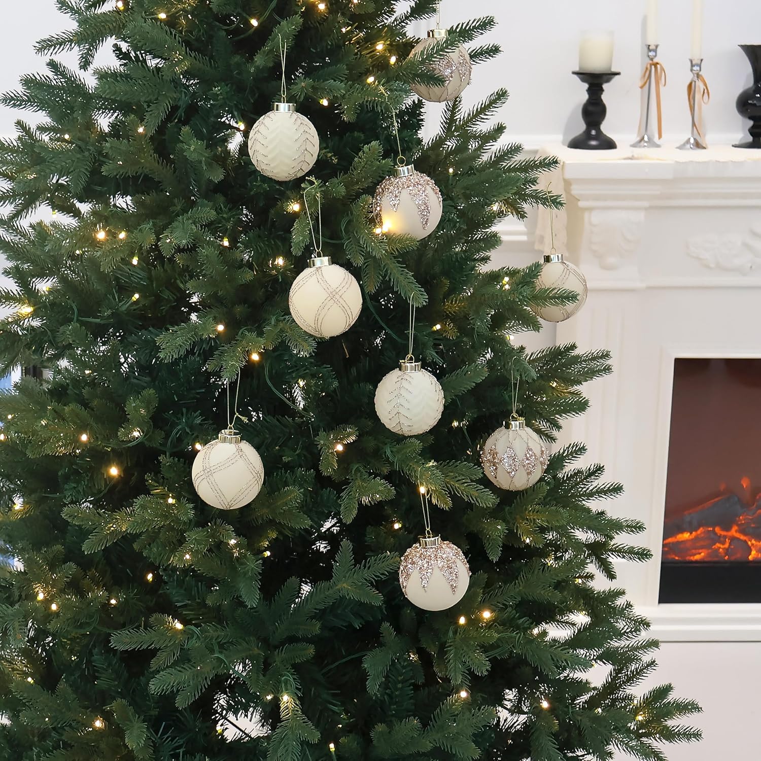 4inch Velvet Ornaments for Christmas Tree, 9PCS Glitter Flocked Christmas Ornaments Decorations Balls Set Decor Beige