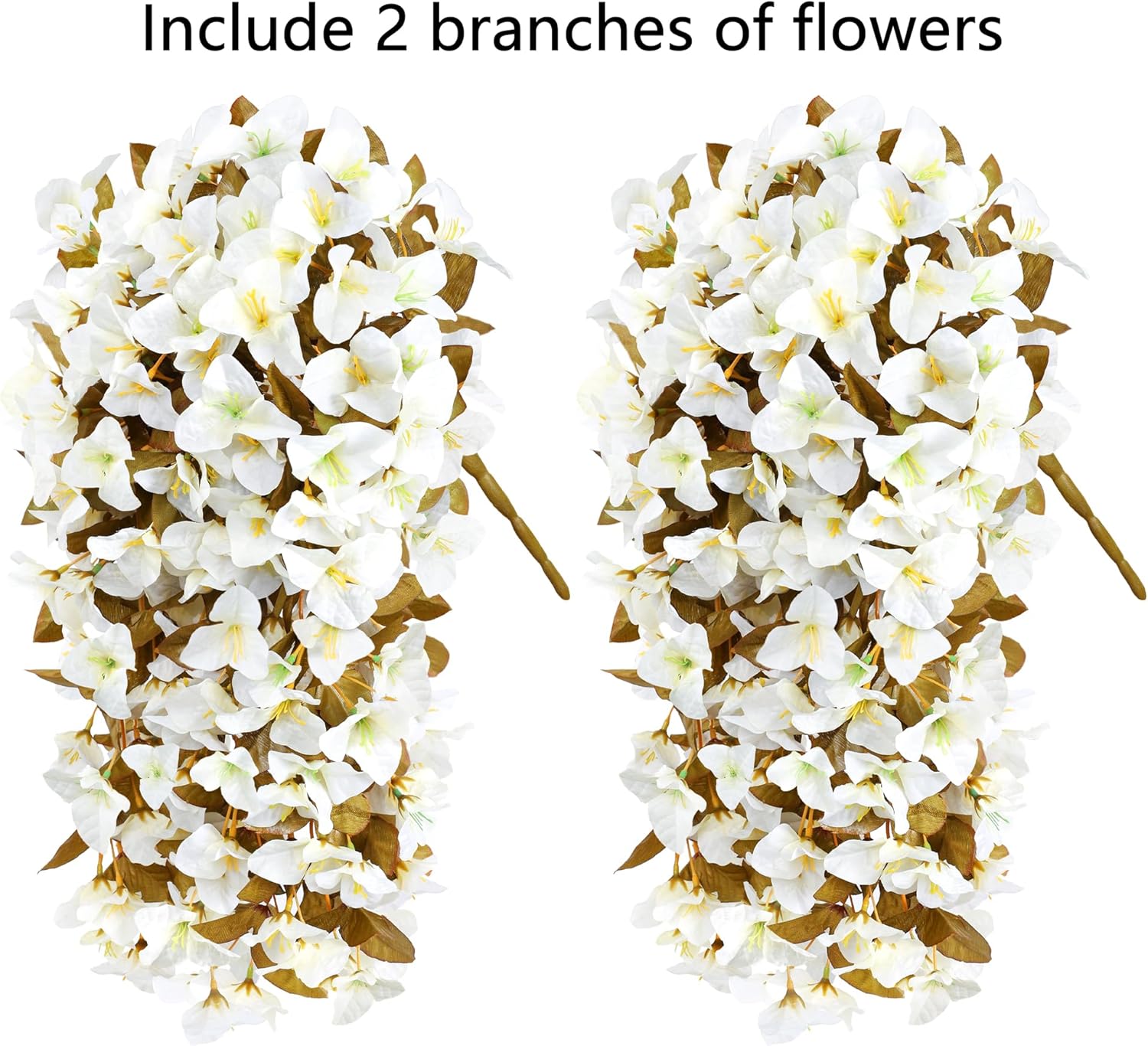 Bougainvillea Artificial Flowers Plants for Outdoors Outside Fall Autumn Decoration, 2 pcs Faux Silk Long Trailing Vines UV Resistant Look Real White Fake Flowers for Front Door Porch Planter Urn Yard