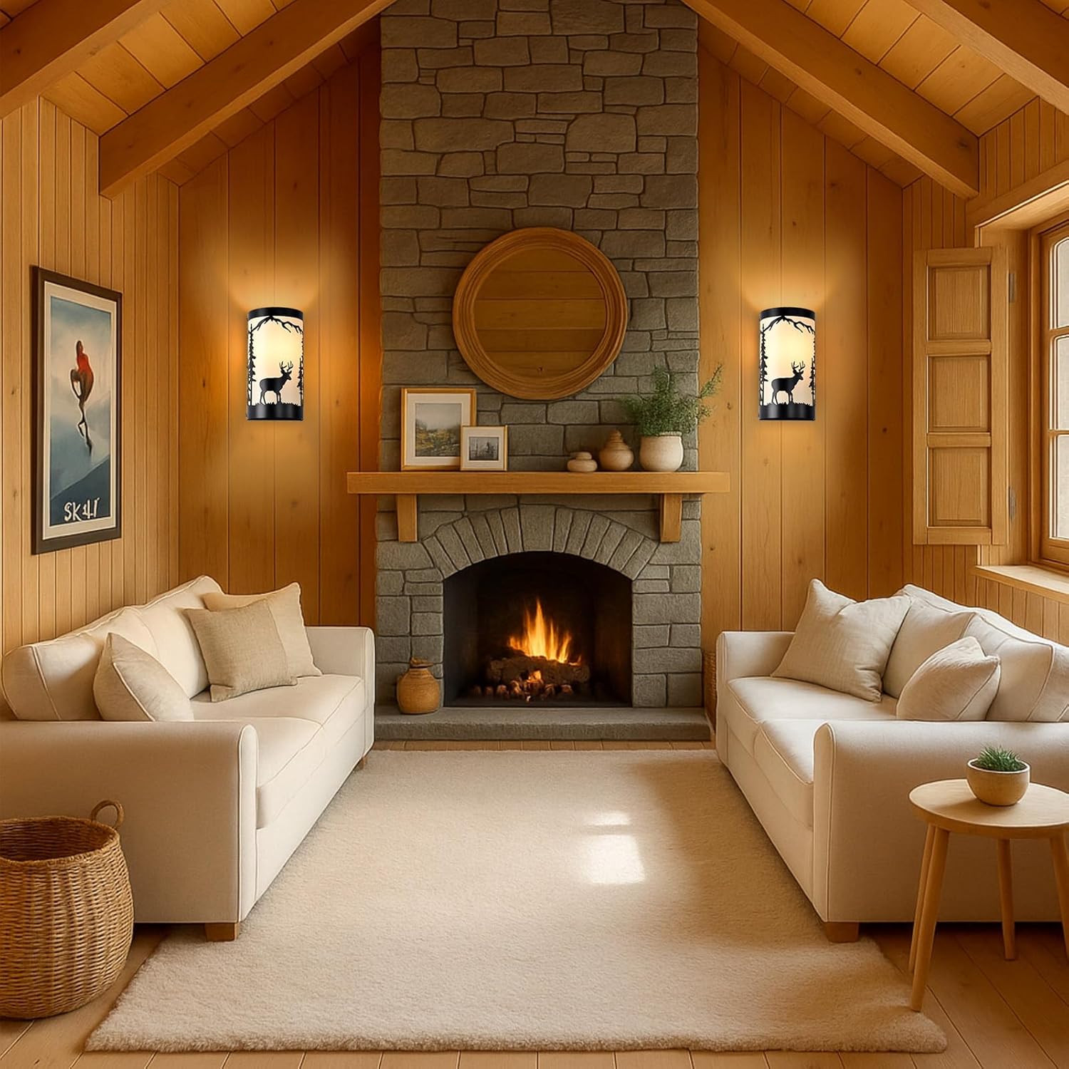 Wall Light Fixtures,Deer Cream White Parchment Rustic Wall Sconces,Farmhouse E26 Base Wall Sconce Light,Industrial Metal Black Sconce,Wall Lamps for Bedroom,Living Room,Hallway,Stairway