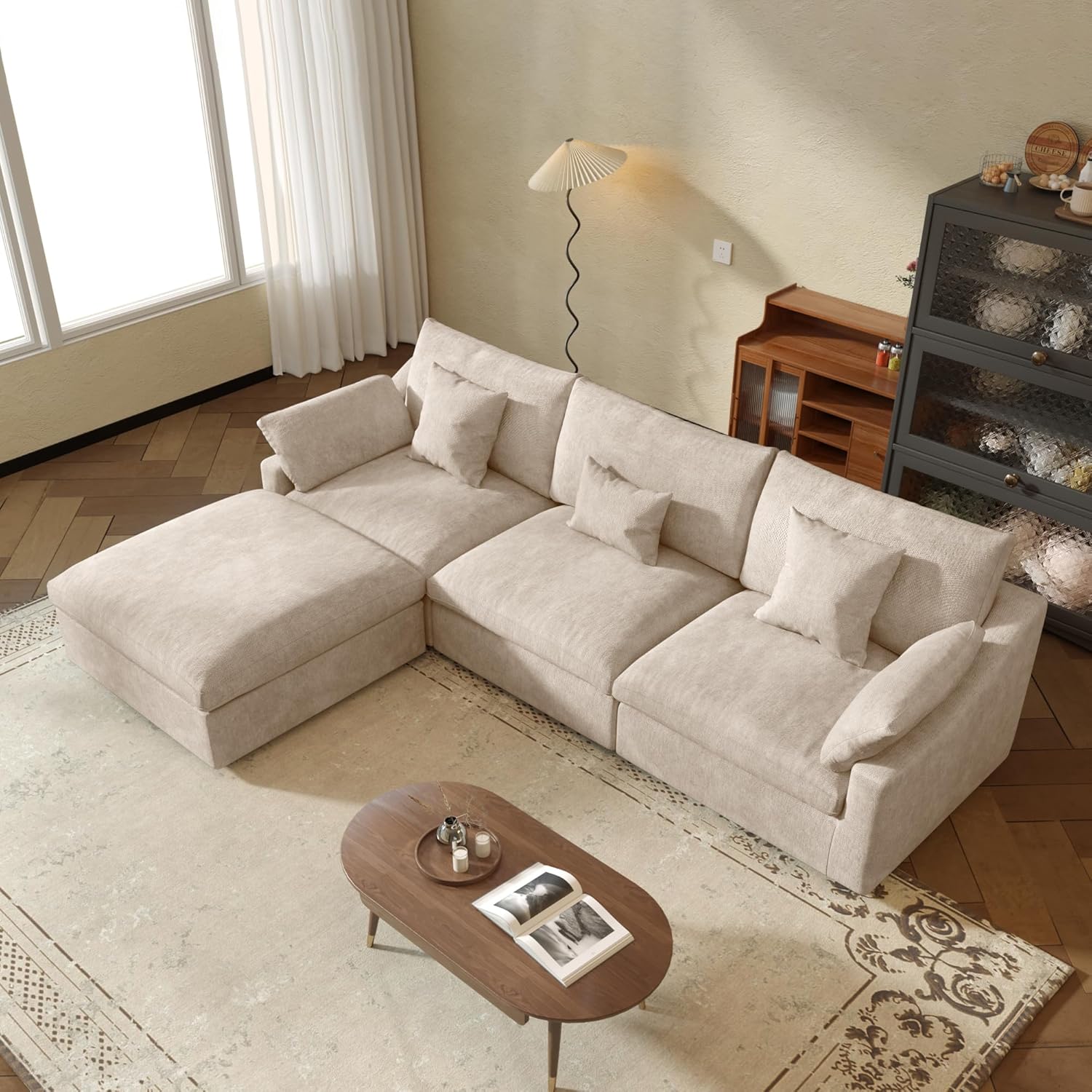 JACH L-Shaped Sectional Couches for Living Room, Cloud Sectional Couch with Deep Seat, Modular Sectional Sofa with Chaise, Covers Removeable & Washable, Sofas Furniture for Living Room, Khaki