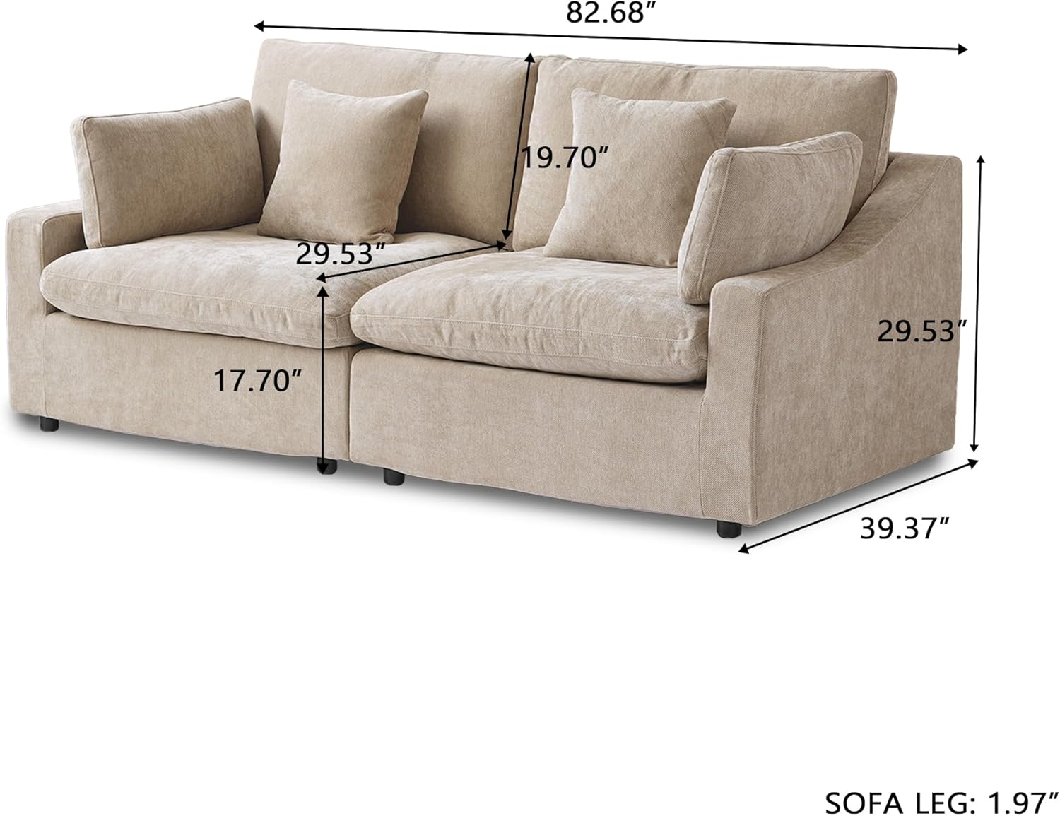 - ⛅[Size Information] Overall Size: 82.68"L x 39.37"W x 29.53"H. The cushion cover, backrest cover, and frame cover of the sofa can all be removeable and washable. You can easily keep the sofa clean.
