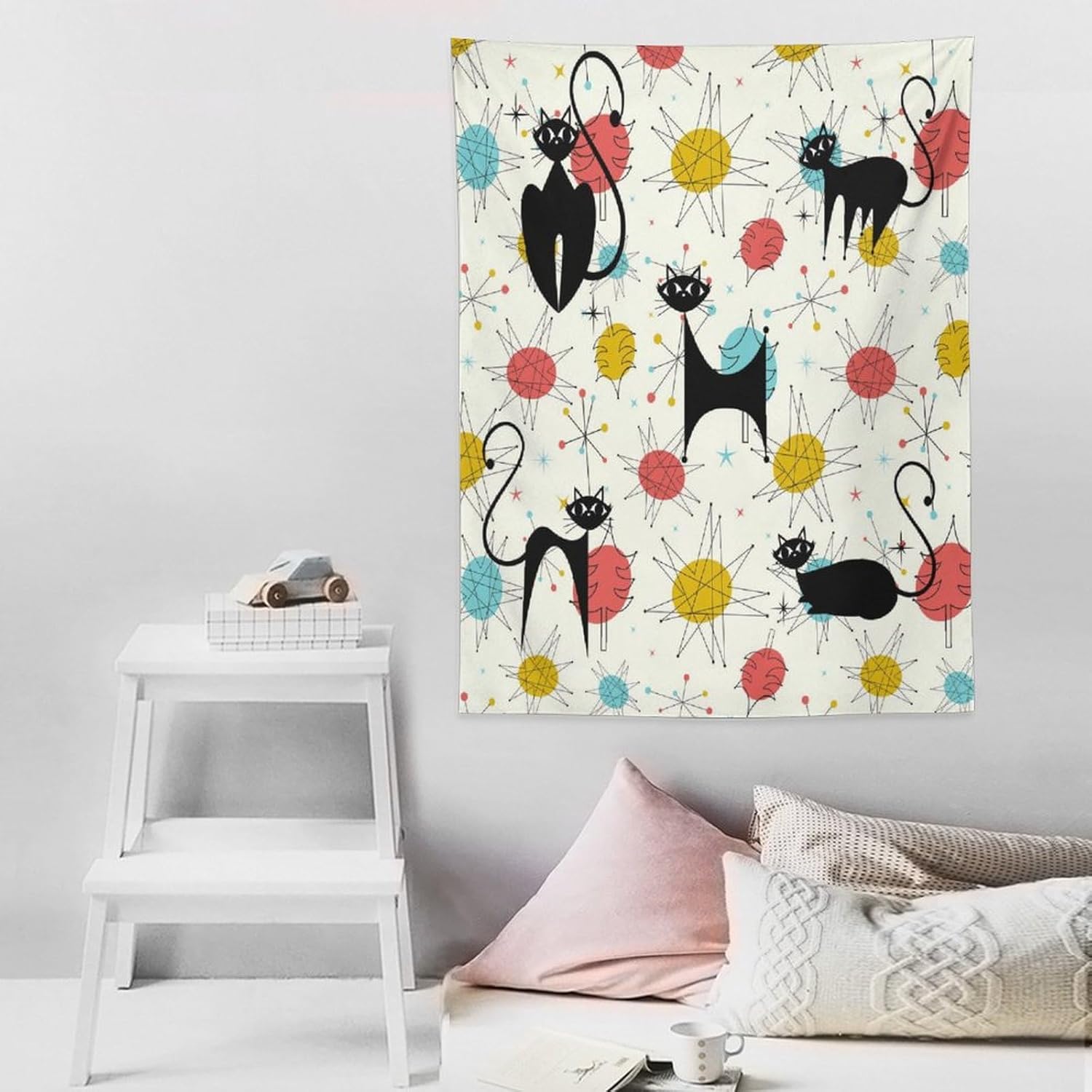 ICMOLYYENLO Abstract Cat Tapestry, Medieval Abstract Atomic Star Cat Vintage Home Wall Hanging Art Tapestry for Bedroom Living Room Dormitory 30x40 Inch