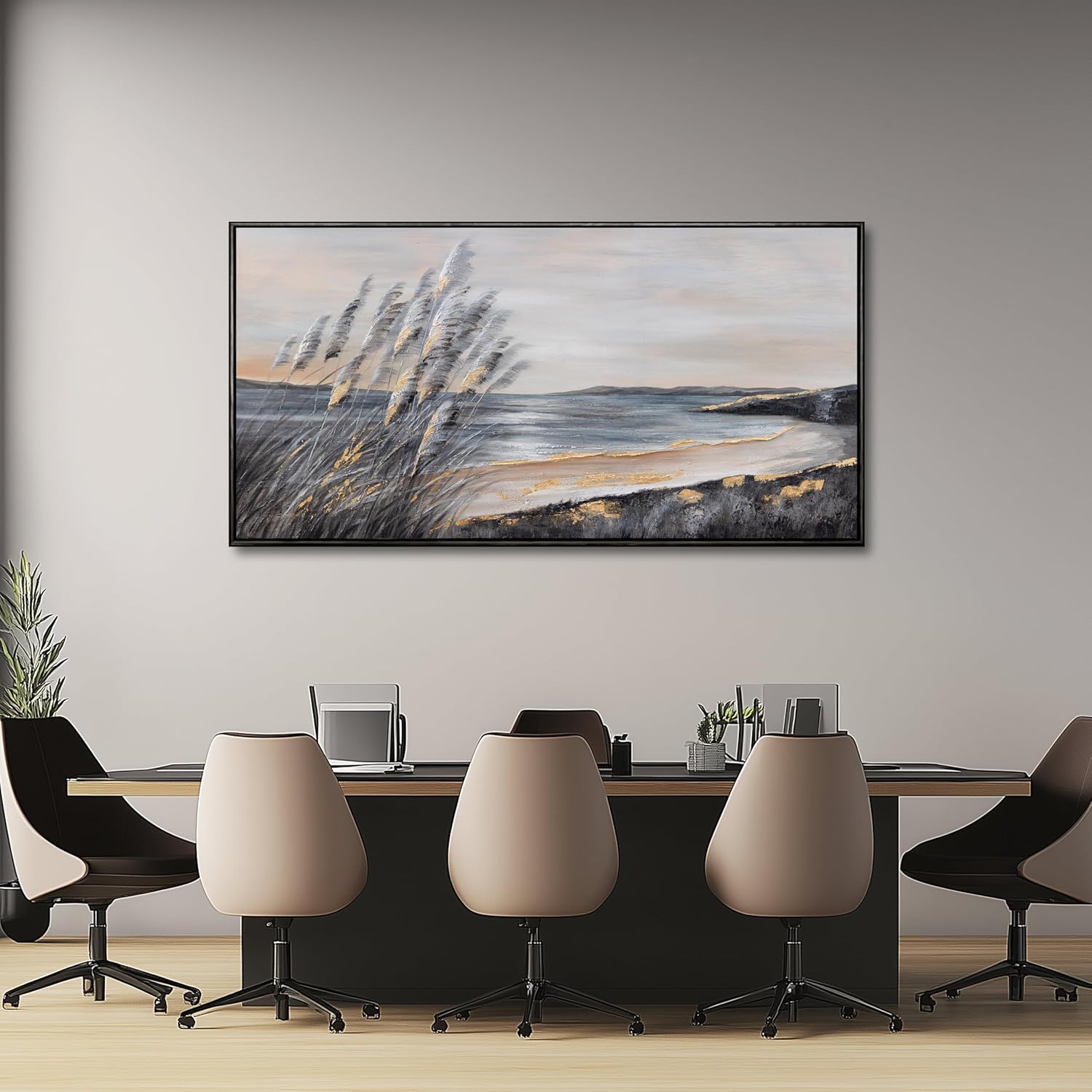 Yuaxker Coastal Wall Art Grey and Gold Wall Decor Trendy Artwork Framed Beach Canvas Painting for Living Room Bedroom Dining Room Office Home Decor 20x40 Inch