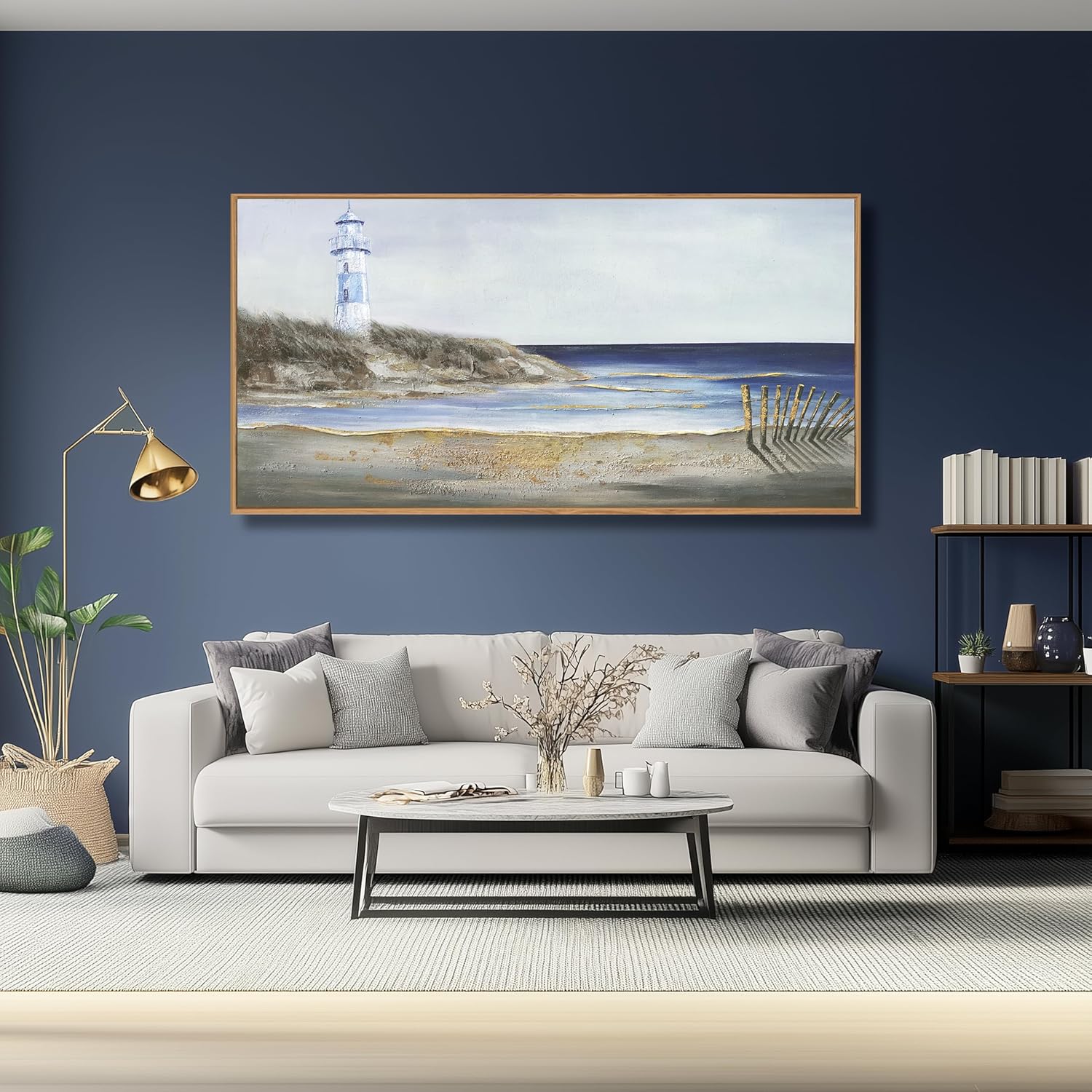 Yuaxker Ocean Wall Art Blue and Grey Wall Decor Framed Canvas Painting Coastal Aesthetic Artwork for Living Room Bedroom Dining Room Office Home Decor 24x48 Inch
