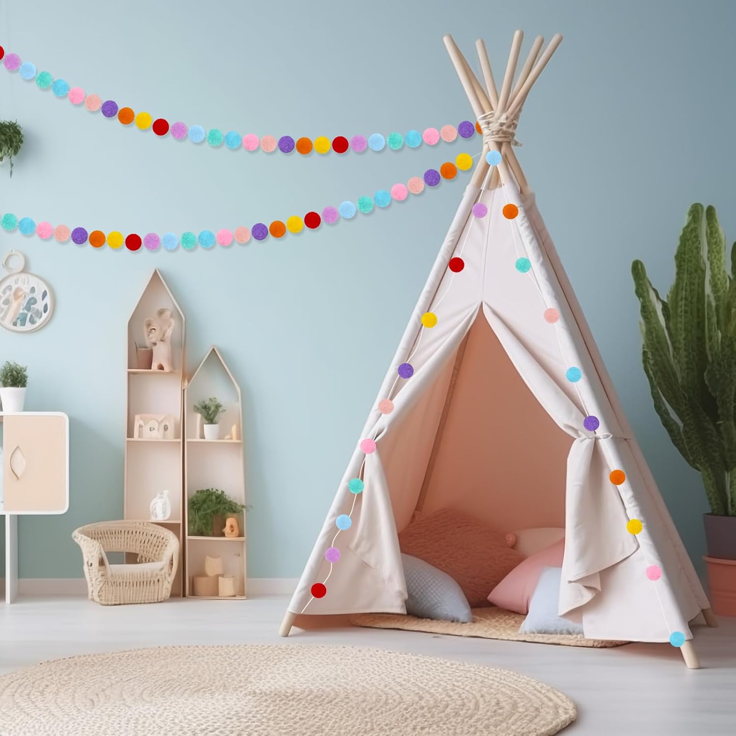 - Easy to Hang: We have assembled the pom balls, and you can hang the pom pom garland in any position according to your preferences and needs without complex installation steps or other tools. You can hang felt garland anywhere, which is the ideal choice for adding festival flavor and home decoration