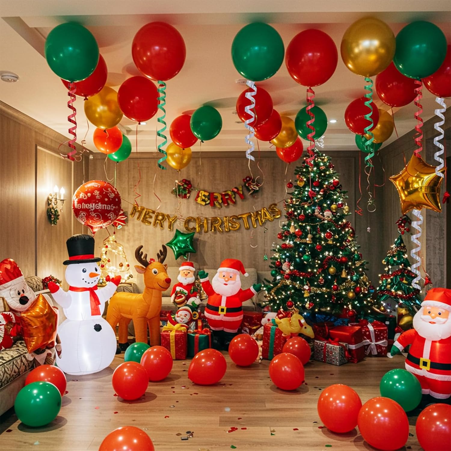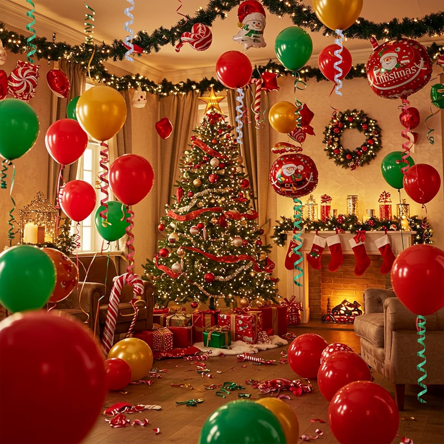 BEISHIDA 3 Pack Christmas Curling Ribbons Red Green Silver Balloons String Ribbons for Gift Wrapping Party Decorations(Total 300 Yards)
