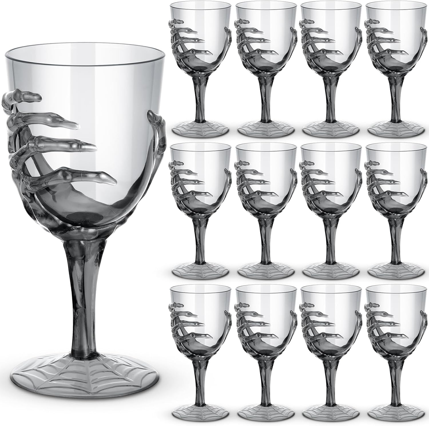 Dandat 12 Pcs Halloween Skeleton Hand Goblets 12oz Clear Plastic Halloween Cups Skull Wine Glass Set for Creepy Spooky Party Decorations (Black)