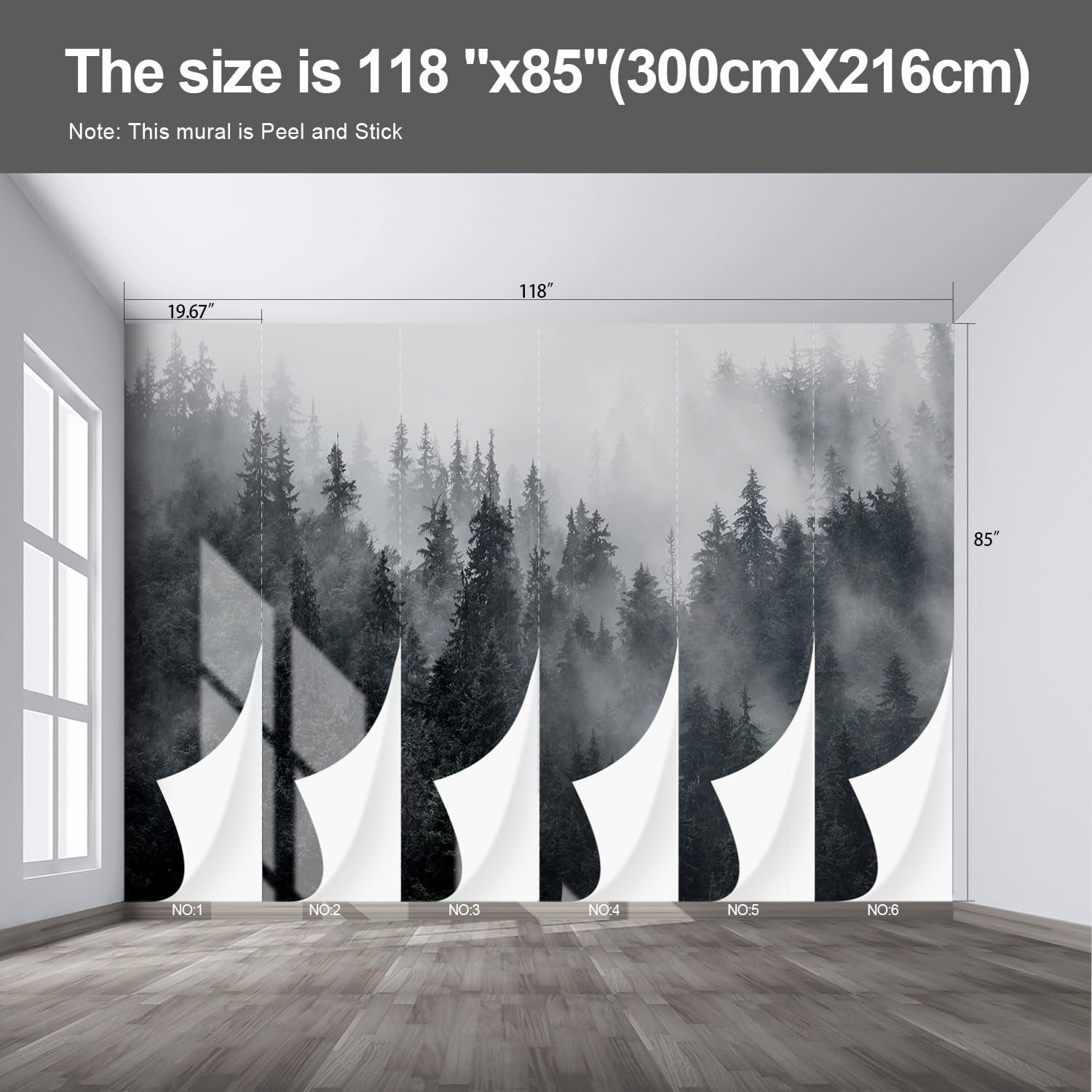 Misty Forest Landscape Wall murals Woodland Tree Peel and Stick Wallpaper for Bedroom Living Room - 85"x118"