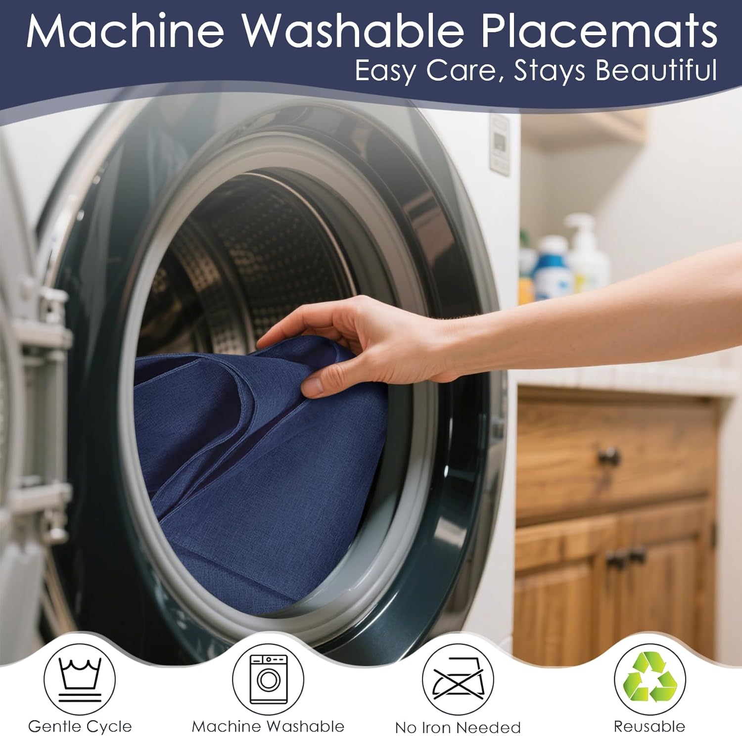 - Effortless Cleaning & Care: These machine washable placemats are easy to clean and maintain - simply use a gentle cycle and smooth with a low-temperature iron when needed. No hassle, just simple upkeep for everyday use.