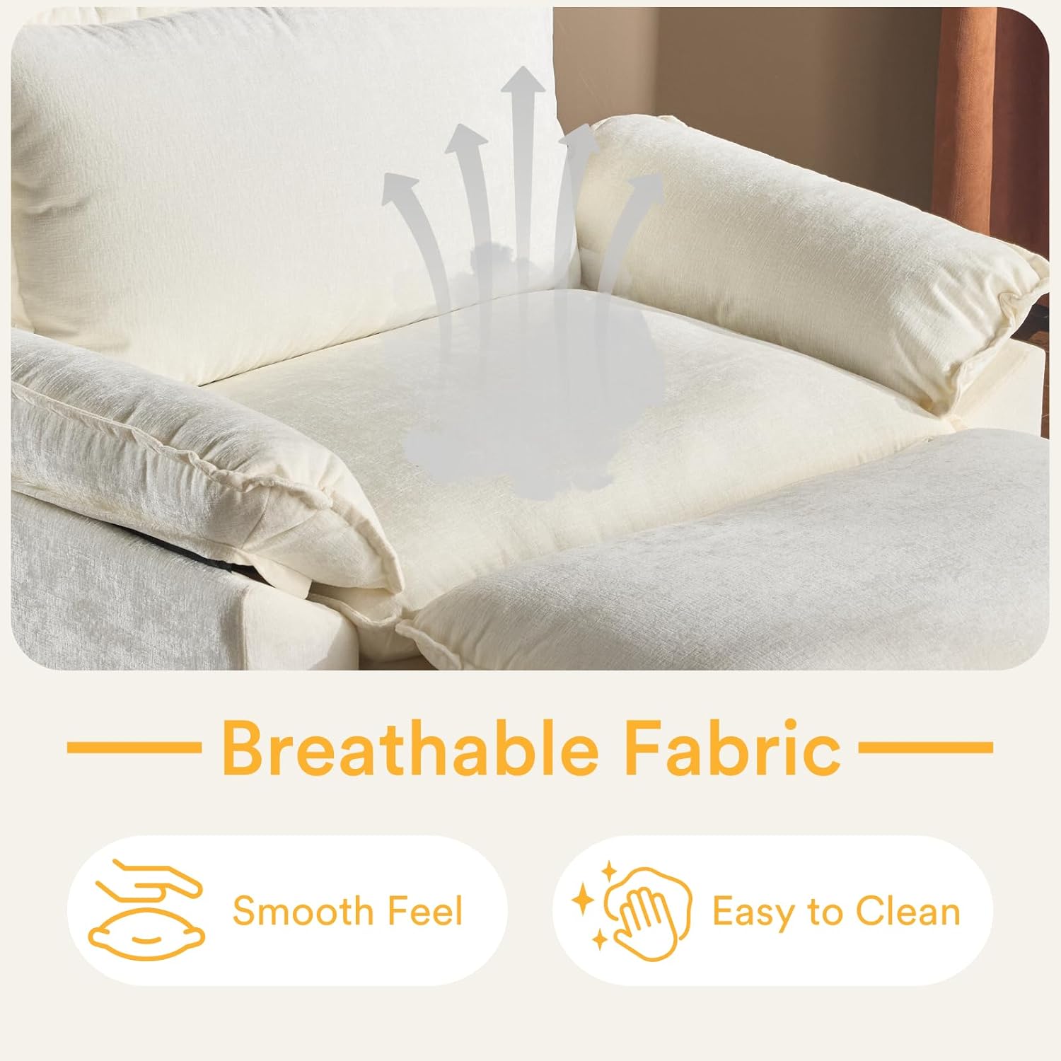 - Cloud-Like Comfort - This oversized couch features upholstered 2-layer seat cushions with high-resiliency foam, thick removable armrests, and a 24" deep seat, which provides a cloudy seating experience.