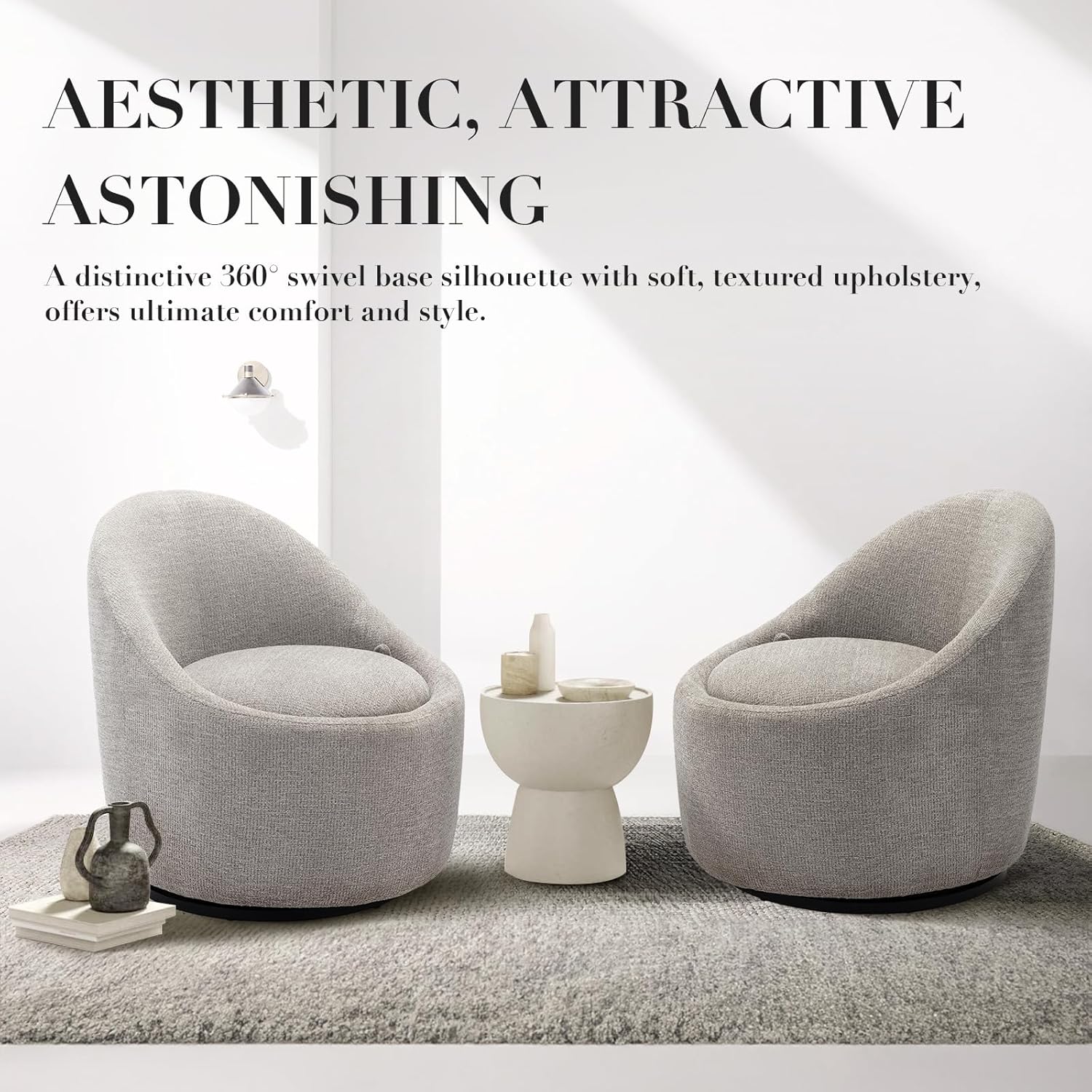 - NO NEED TO INSTALL: The swivel living room chair is fully assembled and ready for immediate use. Its practicality and aesthetic make it a versatile choice for home office