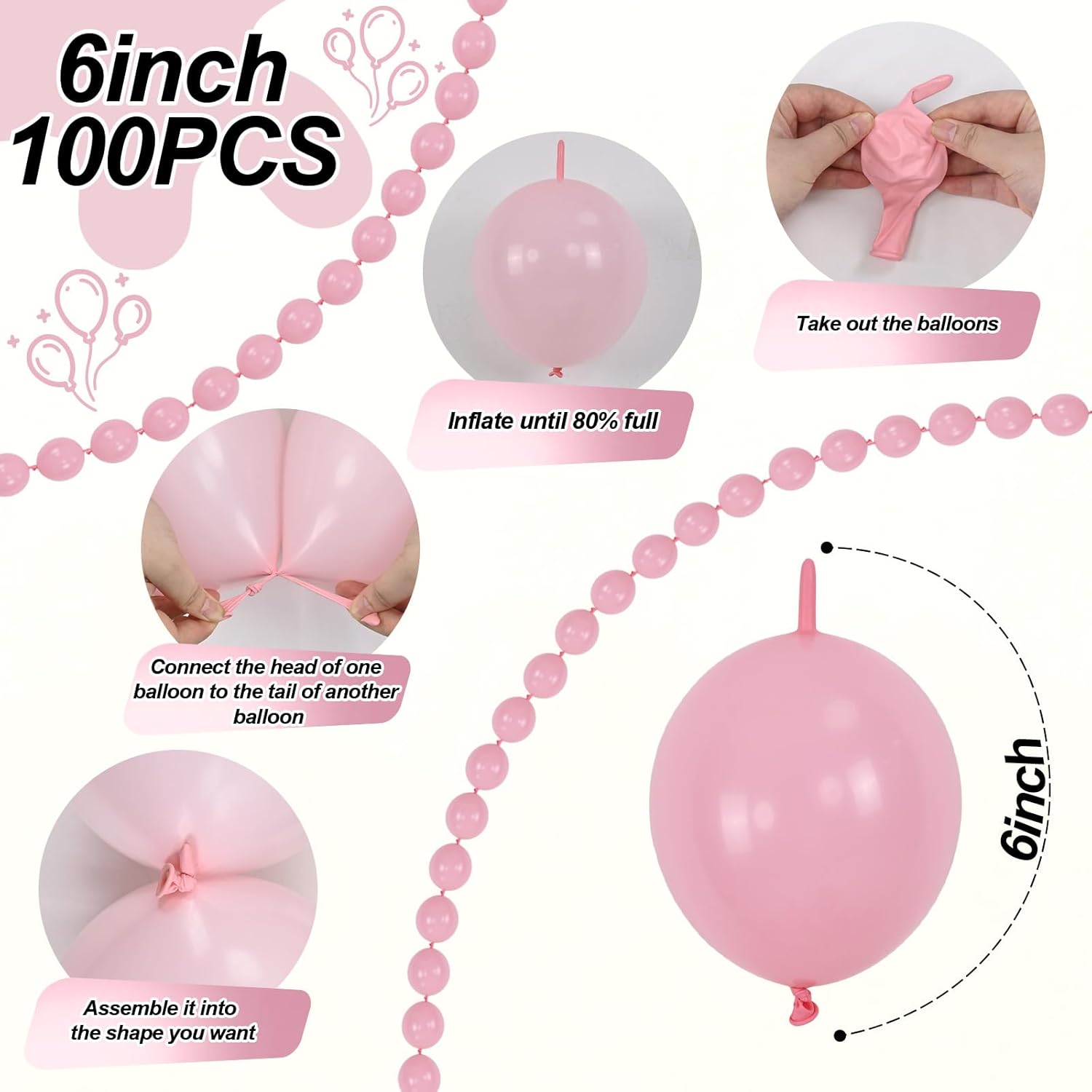 - Link Balloon Set - You will receive 60 pcs of 10 inch light pink link balloons. Our connecting balloons have a quick tail that allows balloons link to be easily. More convenient and easier to assemble than regular balloons.