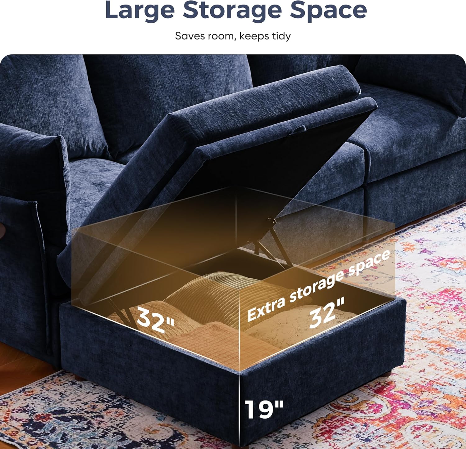 - 💡 Stylish and Spacious Sectional Sofa - A blend of modern elegance and comfort, this blue sofa is ideal for contemporary interiors. Customize seating and shape by adding or removing modules to fit your needs. It's perfect for your living room, family room, bedroom, or office. Overall size: 134.6" W × 102.6" D × 36" H, seat width: 32", seat depth: 24.5".
