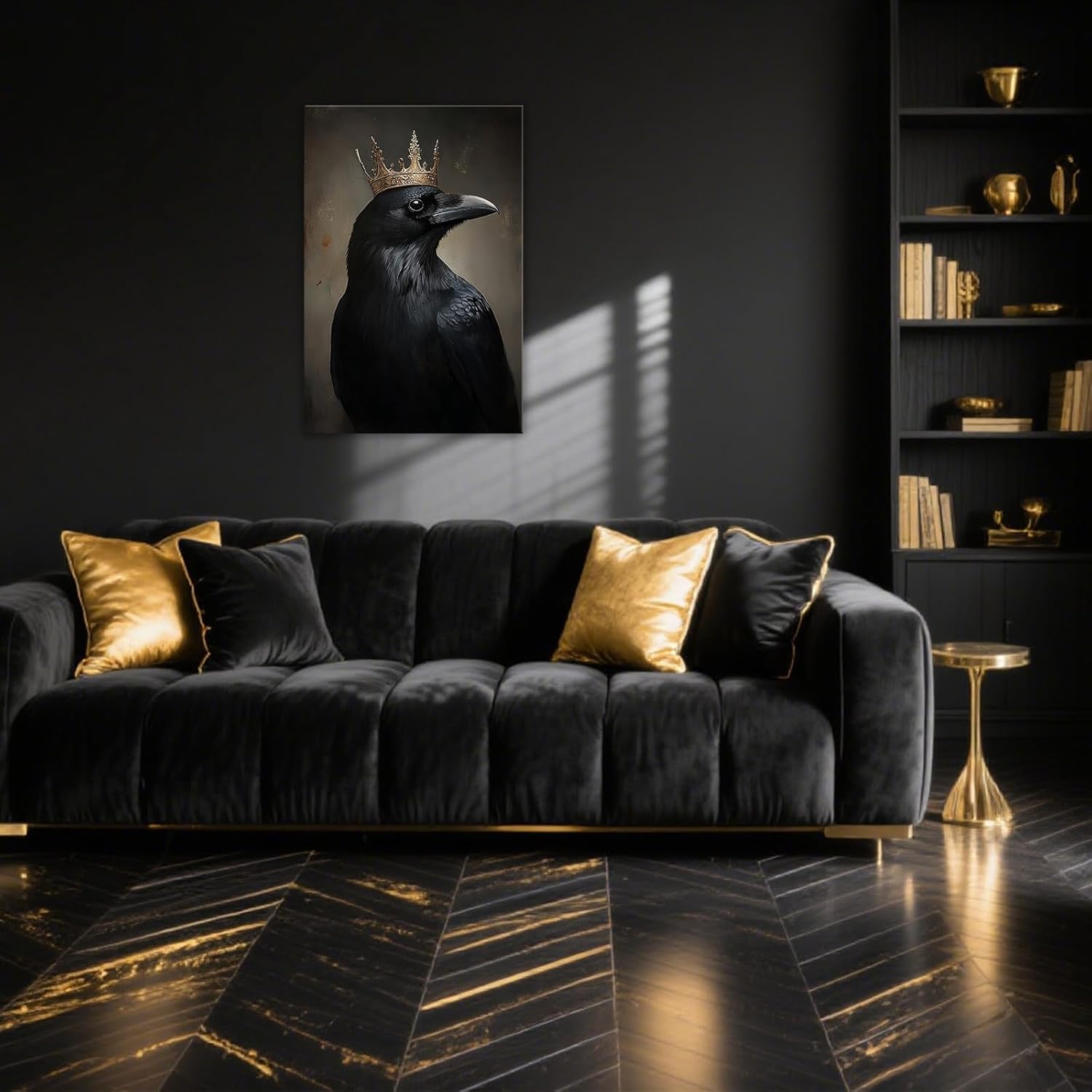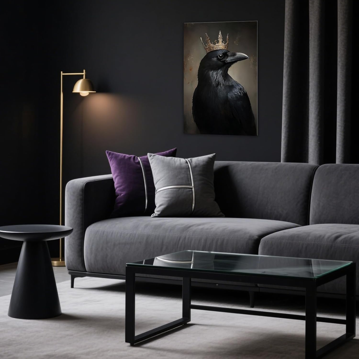 OAAPITI Raven King Wall Art Mysterious Black Bird Painting Dark Gothic Animal Canvas Print for Living Room Bedroom Home Office Inspirational Decor(Artwork-8,28"x42")