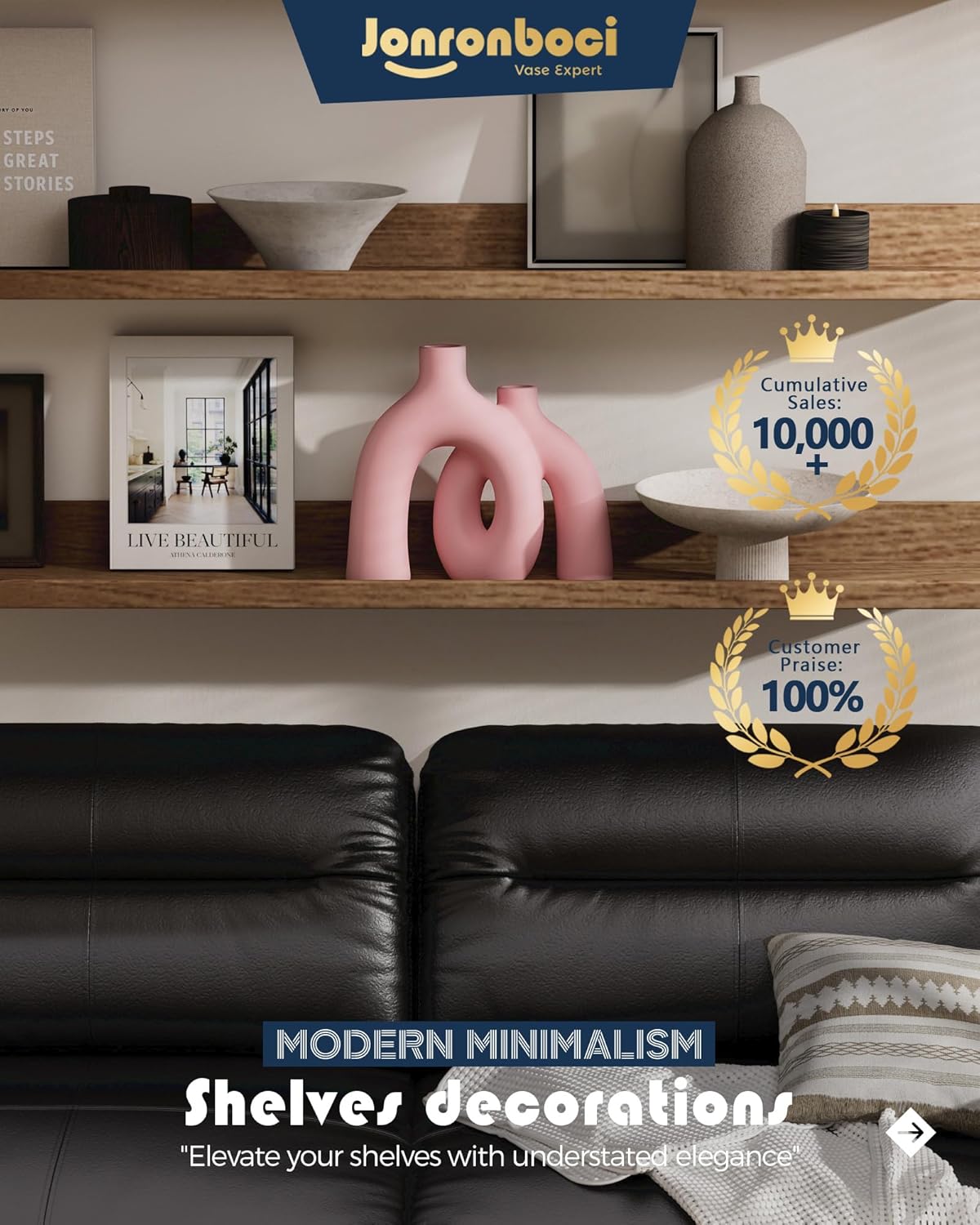 - Effortless Beauty for Any Table or Shelf - Minimalist and modern design modern glam eclectic style decorative vases for living room large shelf, bookcase, Entrance table, sofa table, console table, fireplace or mantle. Of course, Your use it to display dried flowers, reeds, natural pampas grass, rabbit tails, or any kind of fresh flowers."Of course, you can also leave it without any flowers and use it as a home decorations."