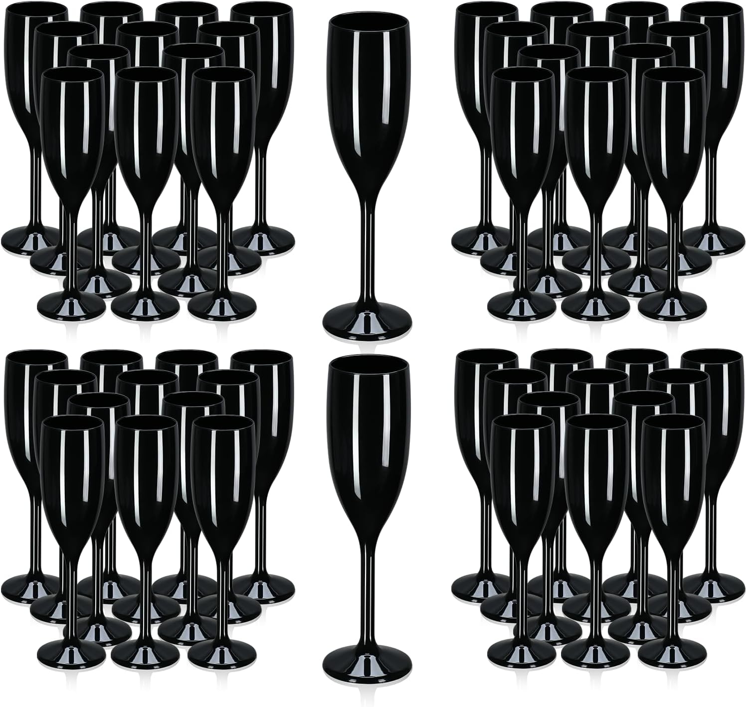 XUWAIDSGN Acrylic Champagne Flutes Toasting Glasses Unbreakable Mimosa Bar Reusable Wine Glasses Vintage Champagne Flutes Stemmed Drinking Cups 5.4 OZ for Christmas Birthday (100, Black)
