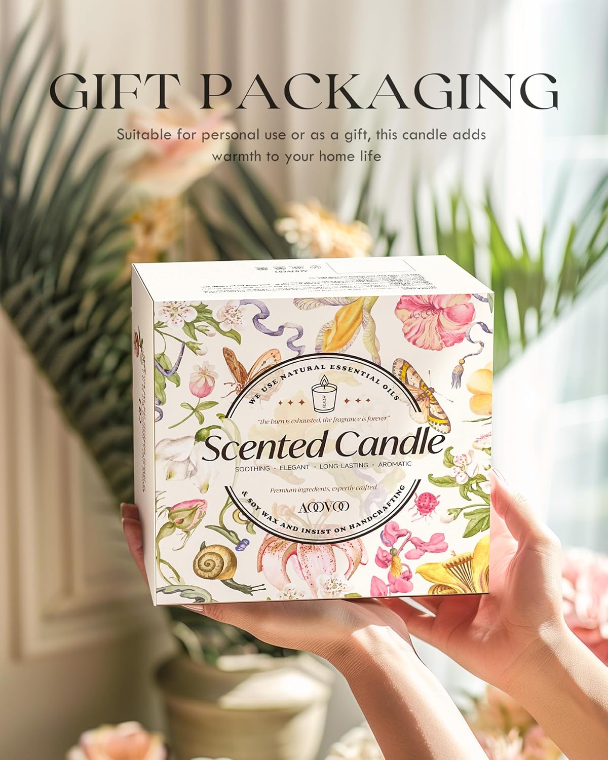 - Perfect for Gifting: No extra wrapping needed. Presented in an elegant gift box with beautifully crafted glass jar candles and gold foil labels, boasting an array of delightful scents that make this gift truly special.