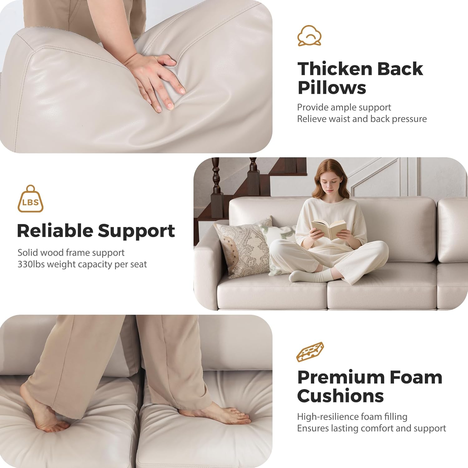 Faux Leather Oversized Accent Chair with Storage Deep Seat Single Sofa Large Reading Armchair for Living Room Bedroom Office Whitesand