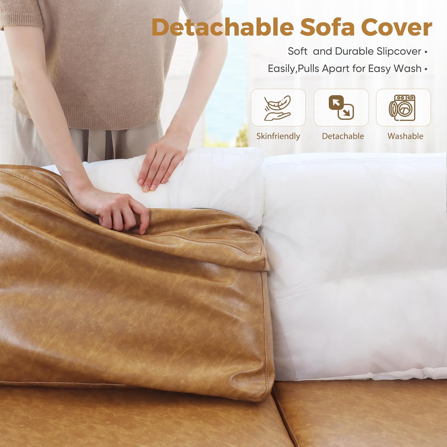 Faux Leather Oversized Accent Chair with Storage Deep Seat Single Sofa Large Reading Armchair for Living Room Bedroom Office Brown