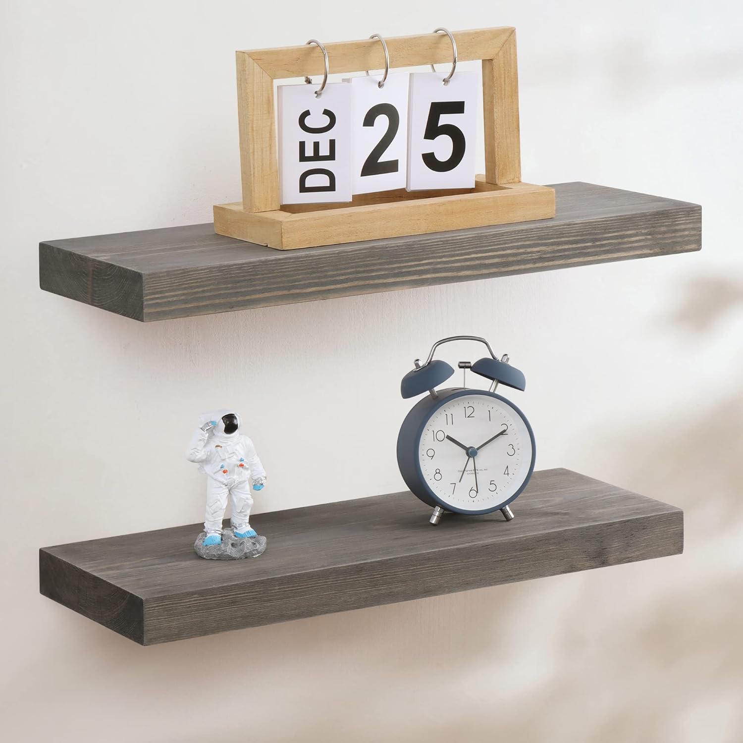 Fun Memories European Pine Floating Shelves for Wall, Mounted Shelf for Decor Storage Set of 2 - Natural Rustic Wooden Wall Shelf for Kitchen Bathroom Living Room Bedroom Farmhouse - Grey