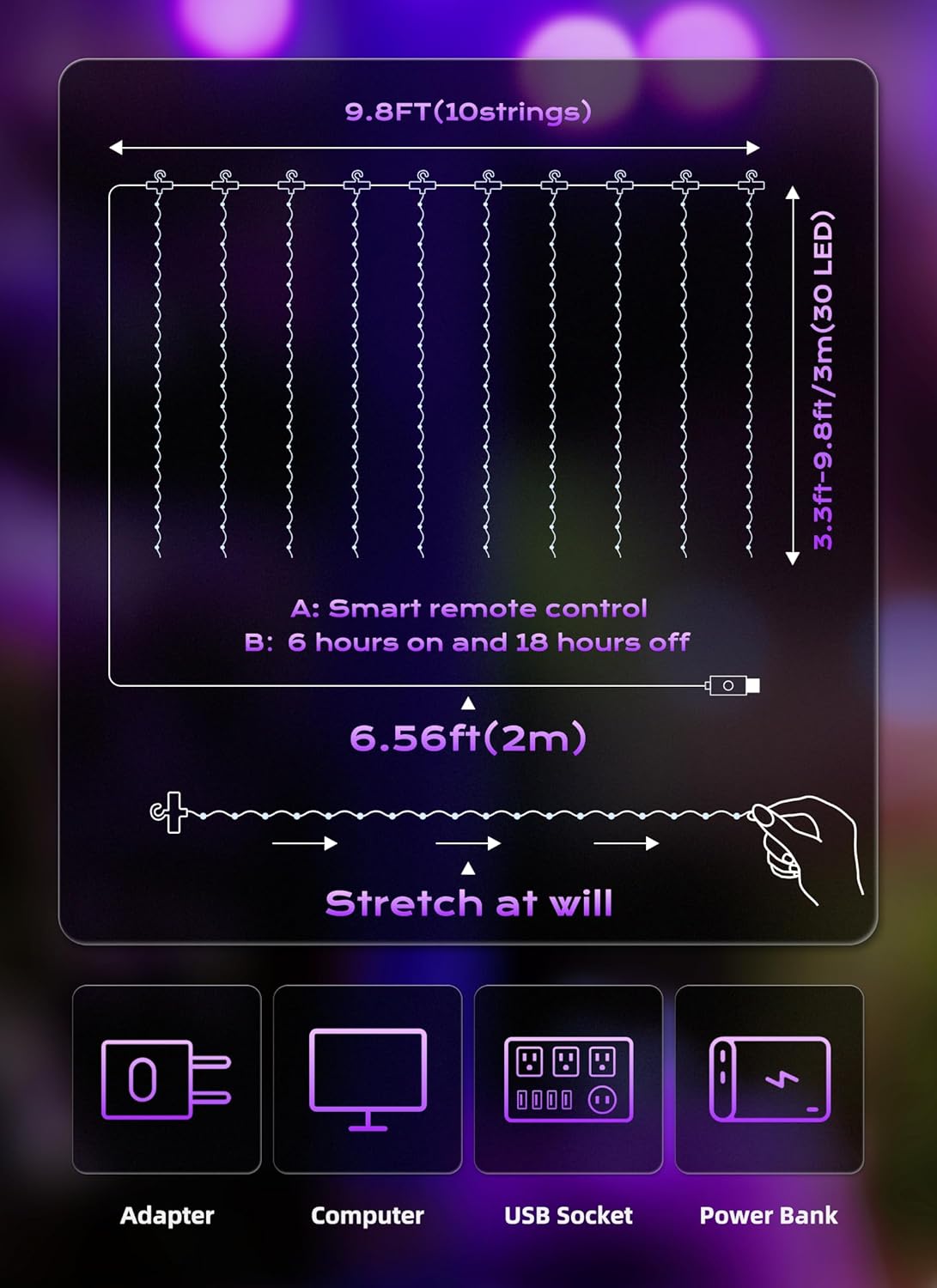 - [Safety & Decoration] Operated with 5V low voltage, our fairy curtain lights glow with low heating, and it is safe to touch; It can be safely hung on the curtains or on the wall. It is a wonderful decor for dorm, college, bedroom, party, birthday, wedding, Christmas, New Year, indoor, outdoor, classroom