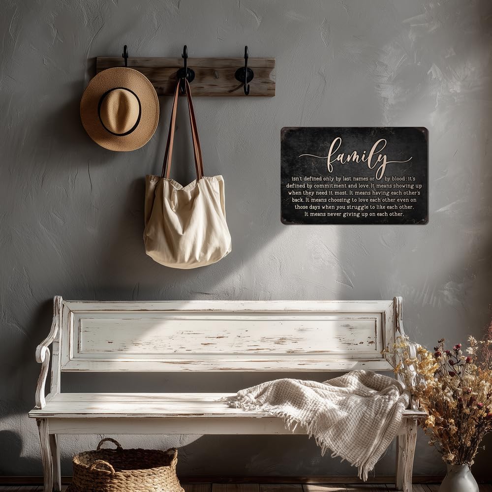 Heuhuww Family Isn't Defined Only By Last Names or By Blood Tin Sign for Home Office Room Wall Decor Gifts for Sister Best Friend Adopted Family 8"x12"(H23)