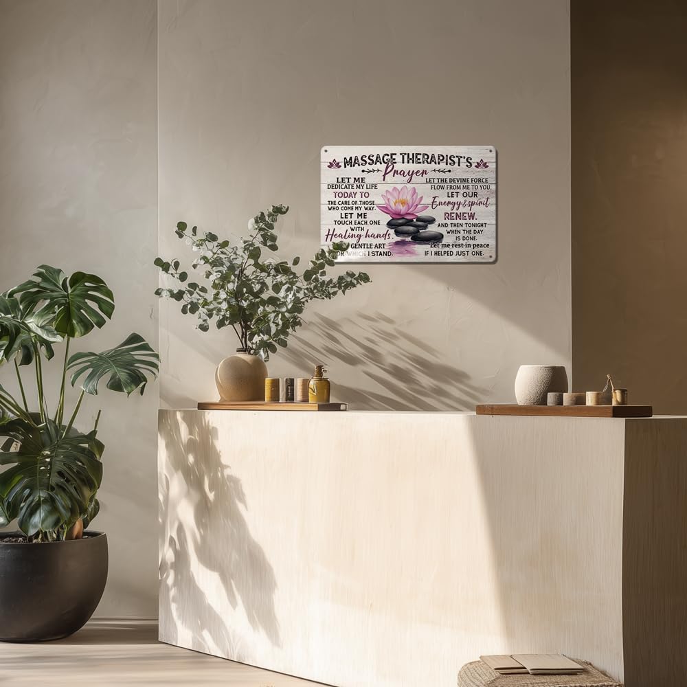 Heuhuww Massage Therapist Prayer Vintage Style Aluminum Sign for Home Office Room Wall Decor Therapist Gifts 8"x12"(H22)