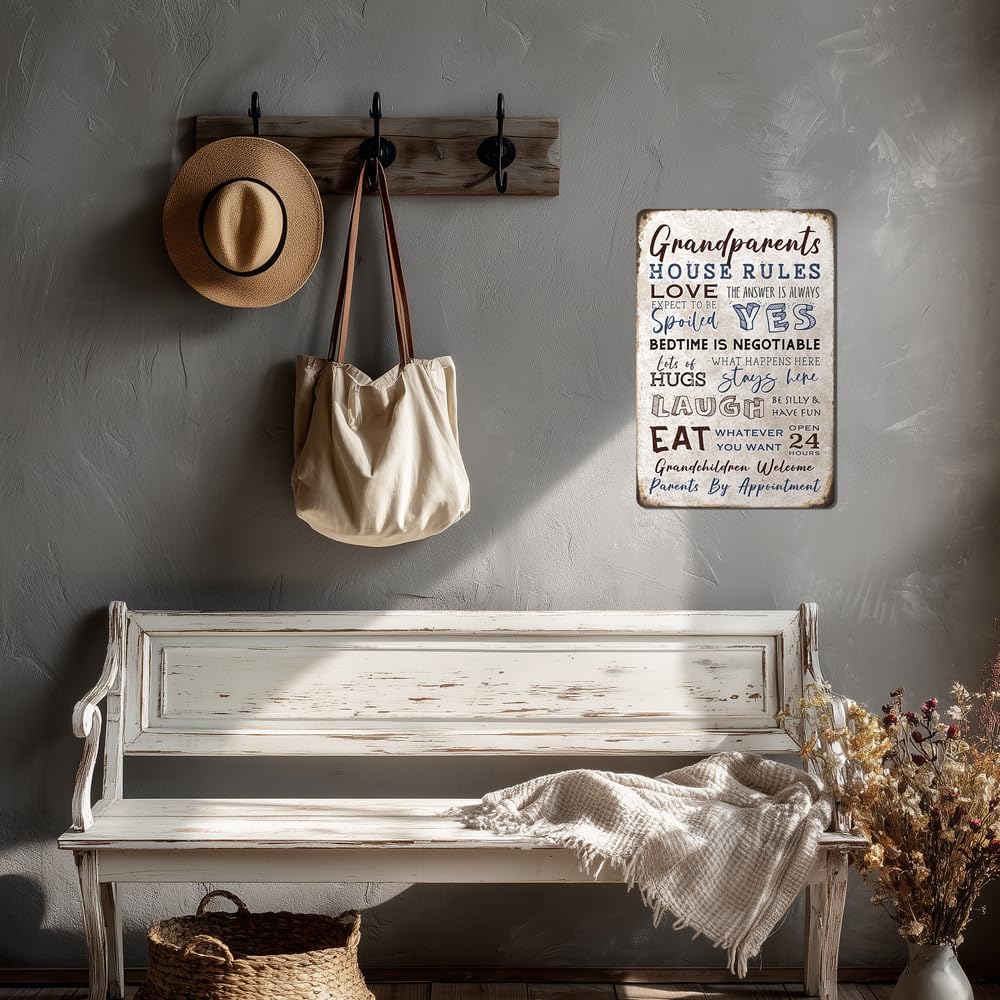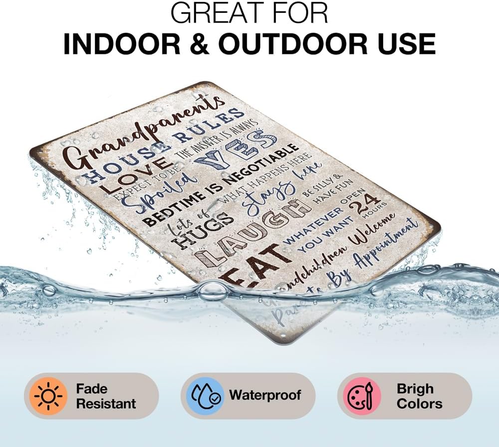 - Grandparents House Rules Decor:This vintage metal sign design with positive message,bright colors,will be an eye catcher decorations.Please note that any rust or scratch marks is part of the design and not actual rust