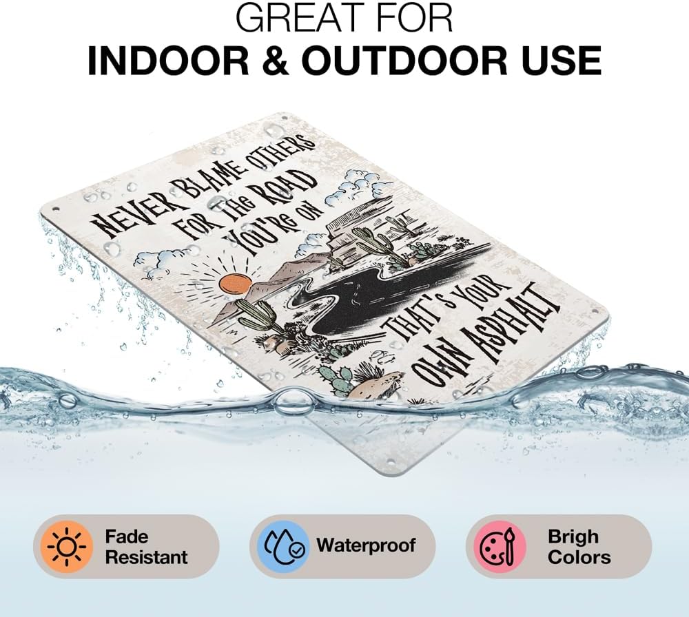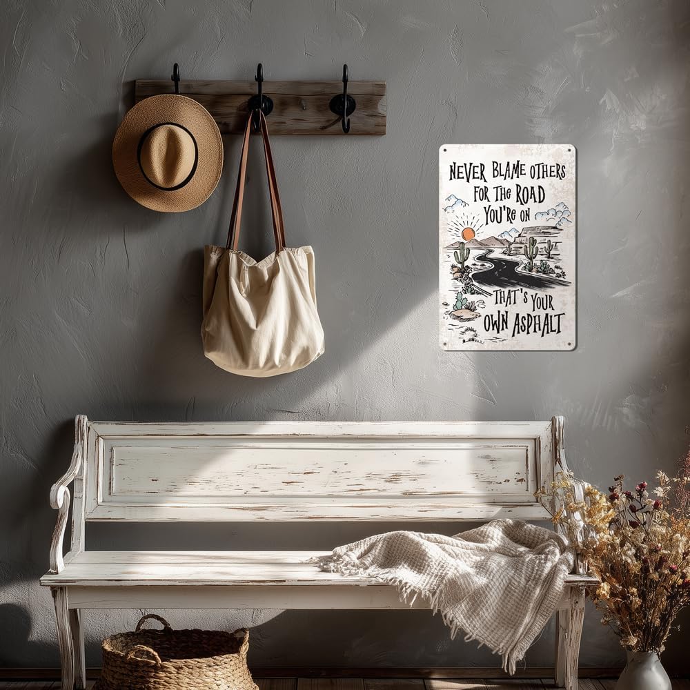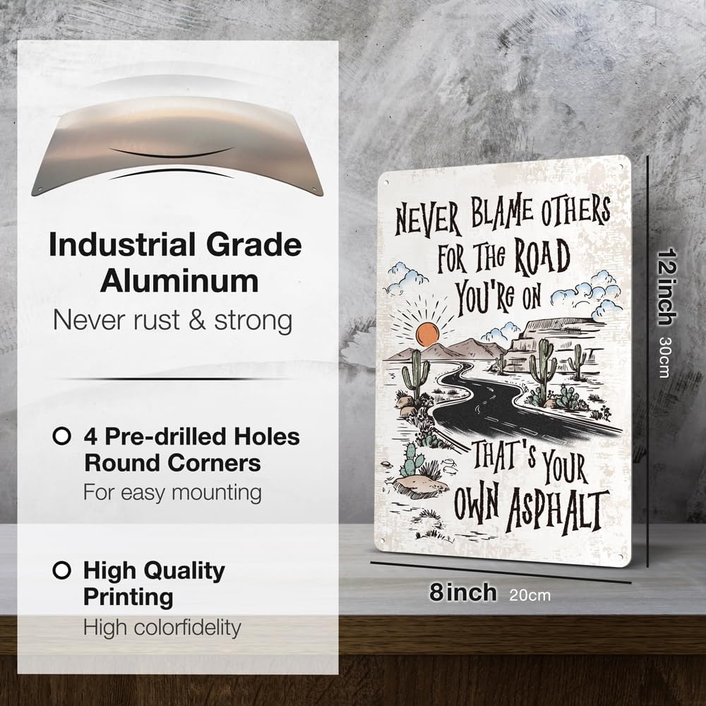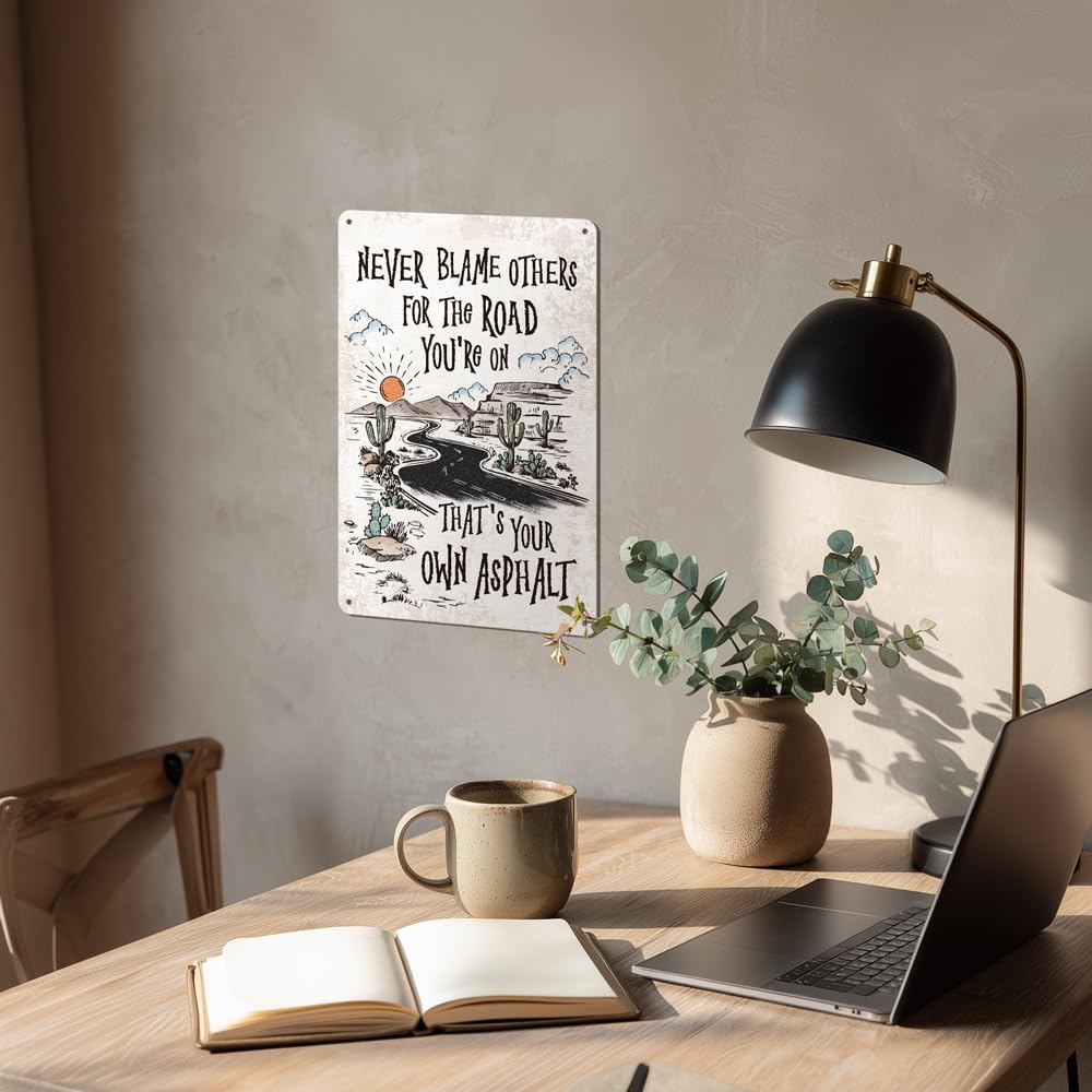Heuhuww Never Blame Others Metal Sign for Home Office Room Bar Wall Decor Indoor Outdoor Tin Sign Decor Inspirational Gifts 8"x12"(H24)