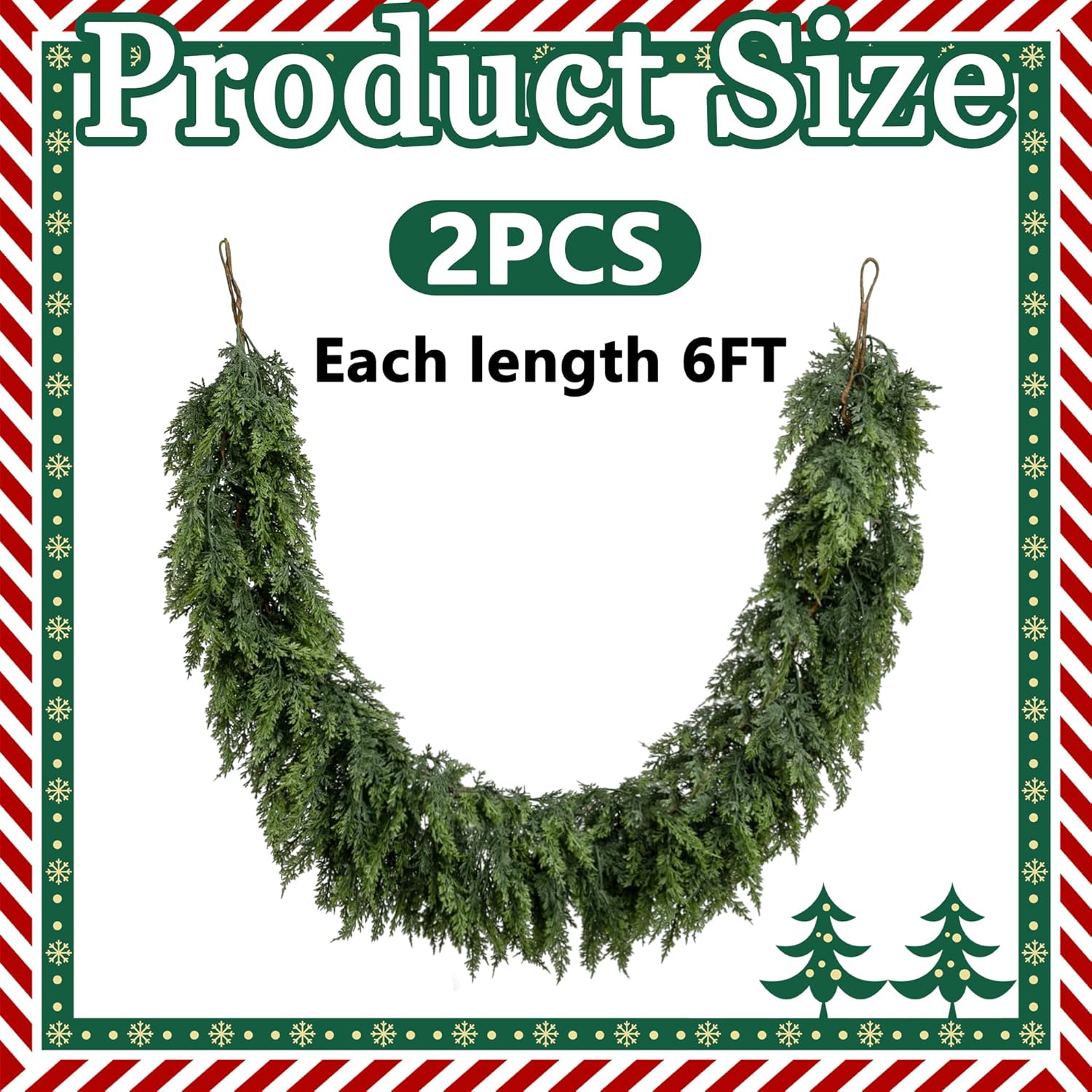 - Size Detail: You will receive 2 pieces artificial pine cypress garlands, each length measure about 6 ft, enough length to meet your holiday seasonal settings, adding a green vitality.