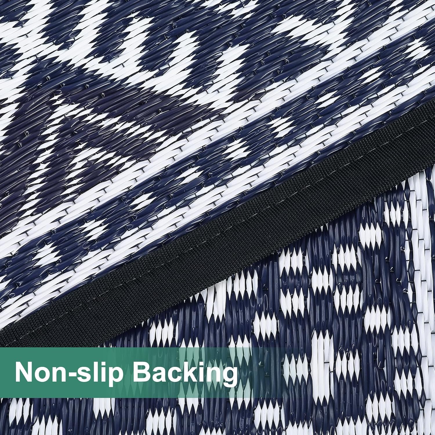 GAOMON Outdoor Rug 9'x12' Waterproof Rug for Patio Decor, Foldable Reversible Plastic Straw Area Rugs Mat for Camper, Outside Carpet for Deck, Porch, Picnic, Beach, Dark Blue/White(Bohemia)