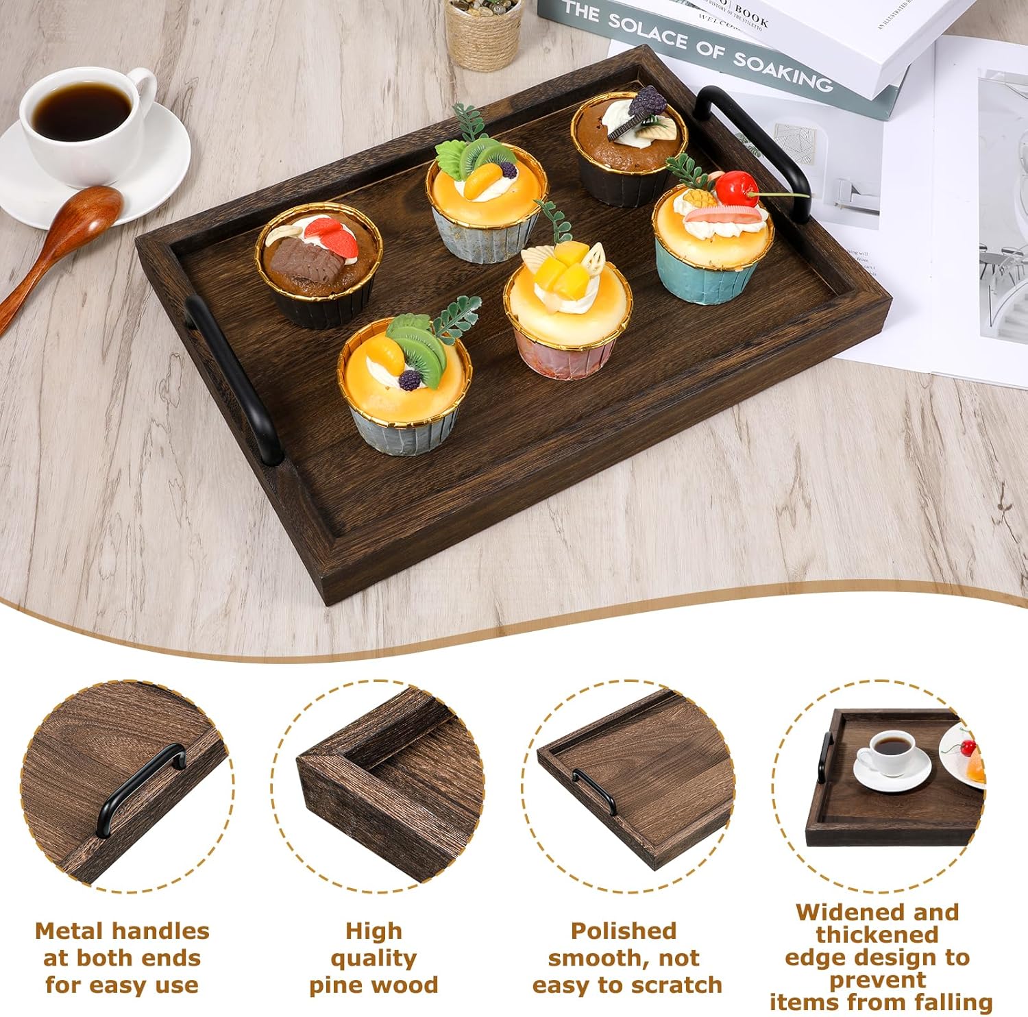 - Industrial-Chic Metal Handles: rustic vintage food serving trays feature sturdy wrought iron handles with a vintage patina that provide a secure grip for transporting meals. blending farmhouse aesthetics with modern convenience for safe, spill-proof carrying.