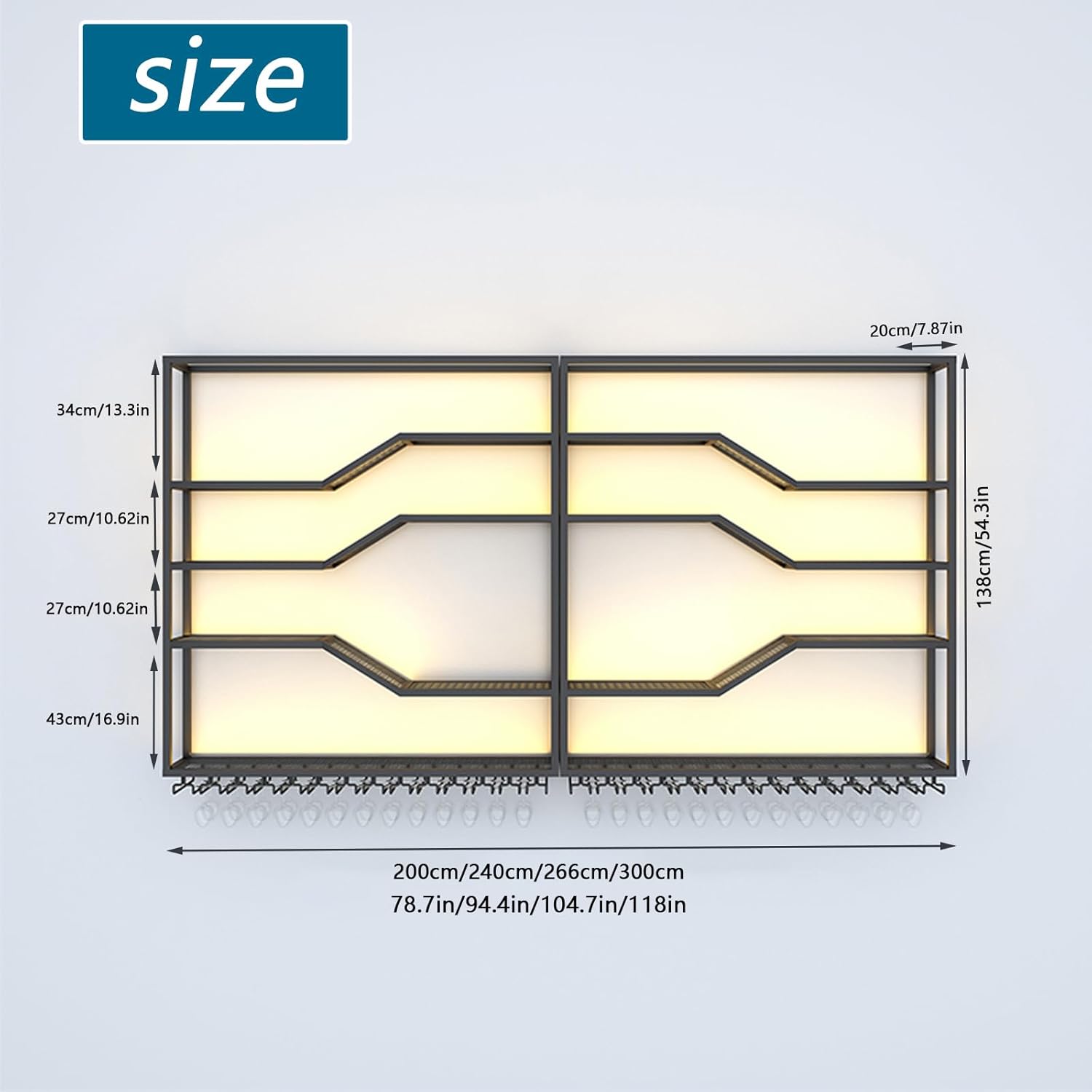 - LED LIGHTS ENHANCE YOUE WINE DISPLAY: Showcase your wine collection with this wall-mounted metal wine rack, featuring built-in LED lights for a stunning visual effect.After receiving the light strip, stick it along the edge of the wine rack and plug it directly into the socket for use. (It is more convenient and safer than wiring it yourself)