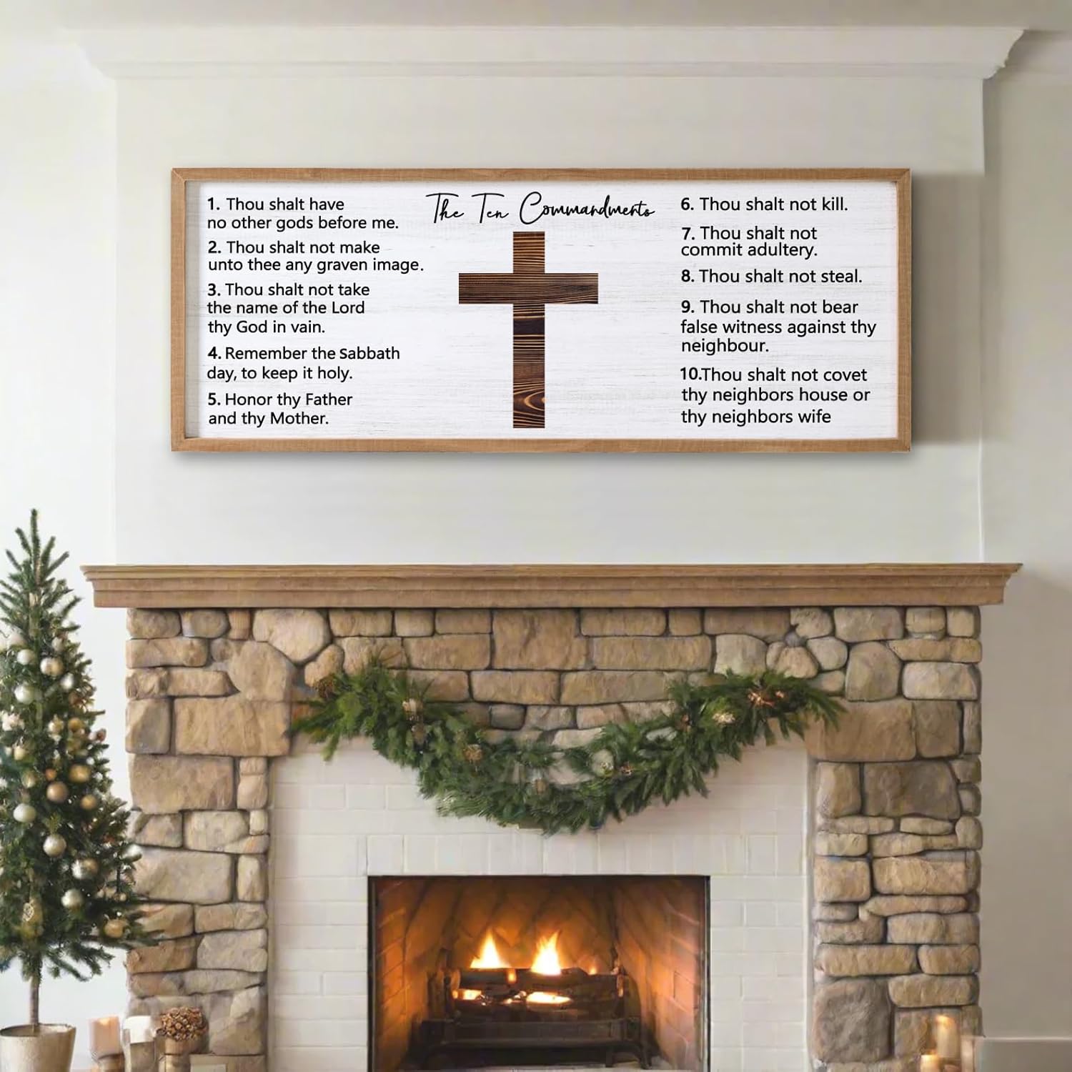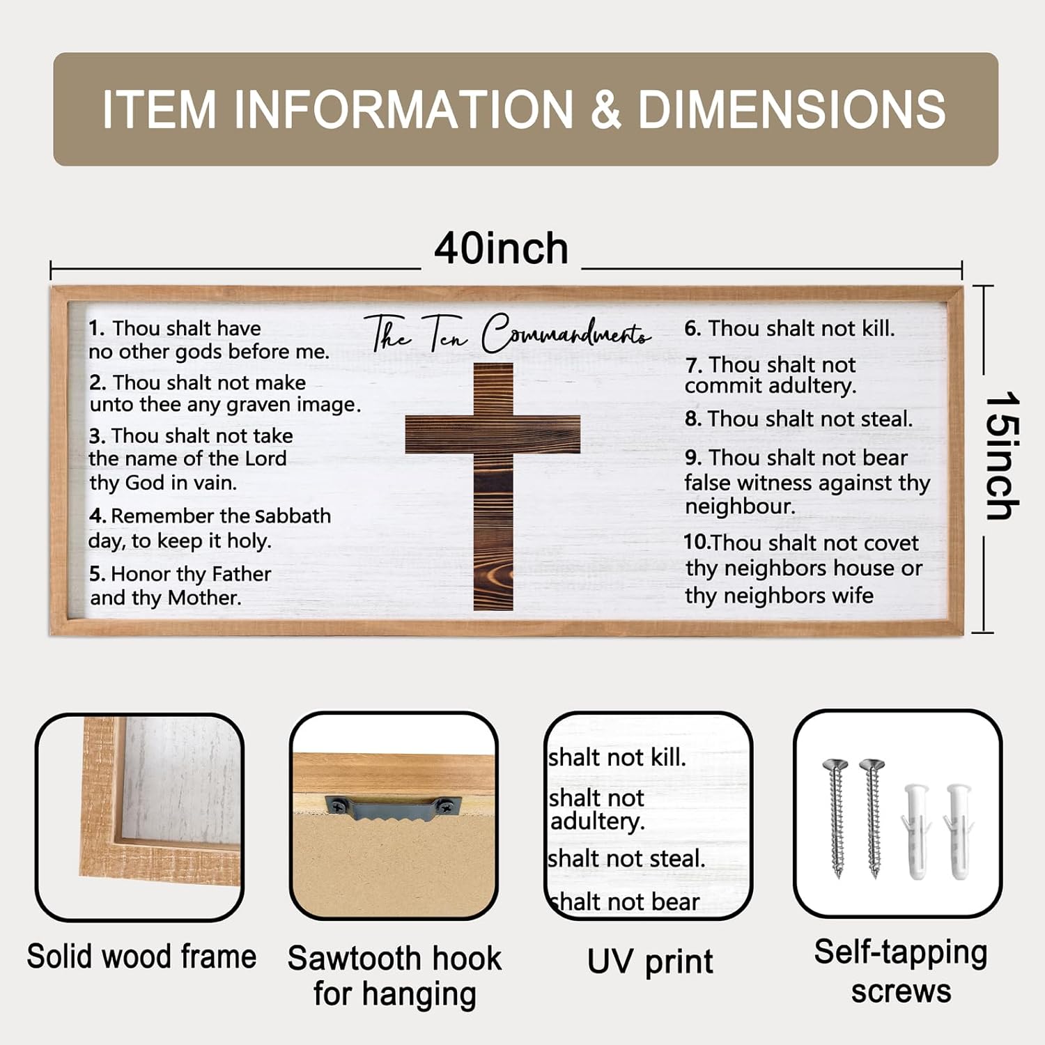 - 【Encouraging Words】The Ten Commandments large hanging wood sign adopt minimalist letters on the white background, showing constant reminder of faith and devotion in any setting and you passion for god, adding a touch of elegant, and classic beauty to your space and giving people a calming feeling.