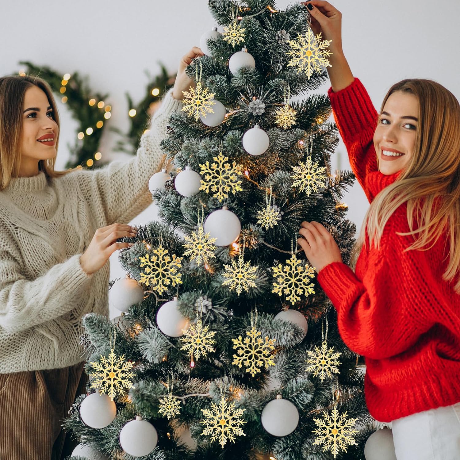 - Designed for Hanging: Each glitter Christmas snowflake features a hole at the top, specially crafted for holiday decorations. When paired with the included string, they're ready to adorn your Christmas tree, walls, ceiling, windows, fireplace, porch, mantel, doors, bedroom, and more—instantly infusing your winter home decor with festive cheer