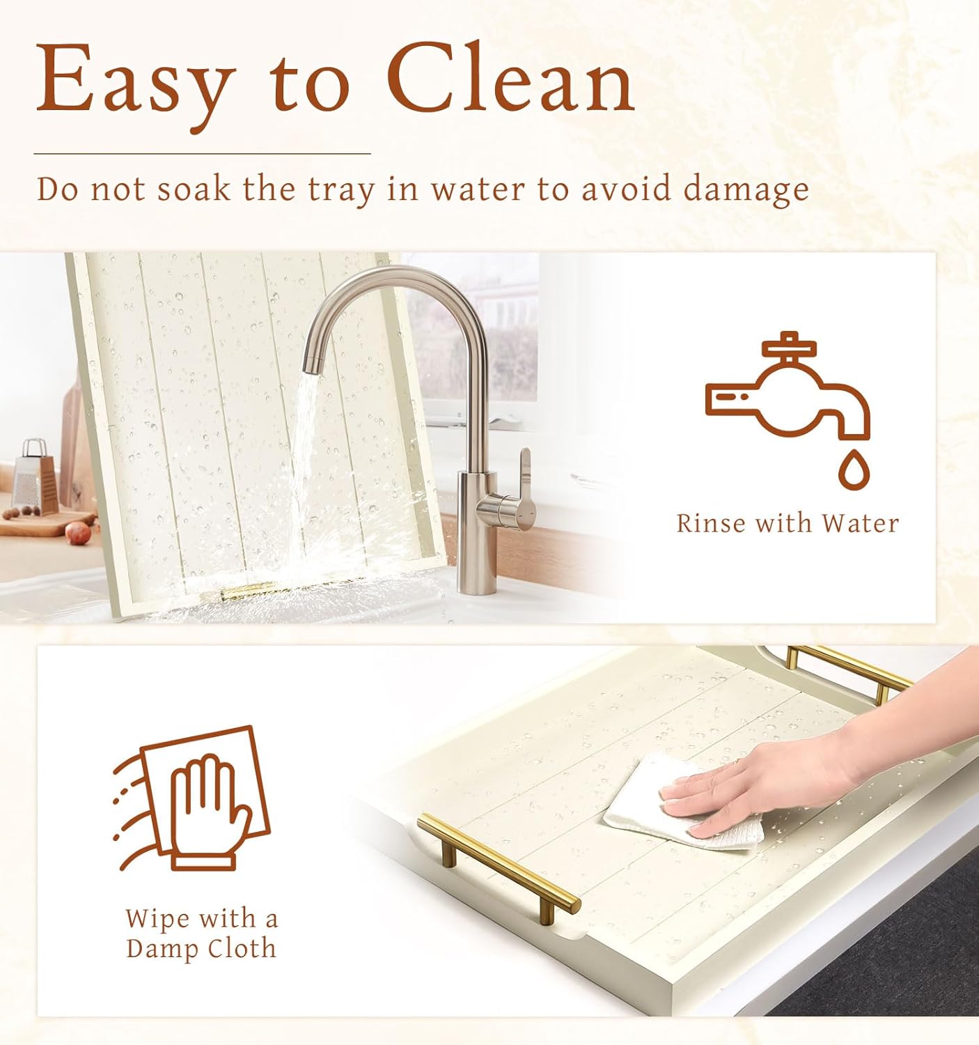 - 【WHO DOESN'T LOVE HANDCRAFTS?】Have to say our rectangle white wood serving tray is so functional and stylish at the same time. Every paint process is completed by our hard workers, who aim to make each beautiful tray to prevent splinters, paint chips, and scratches. It's lightweight but sturdy enough to be used as a coffee table tray for the living room.